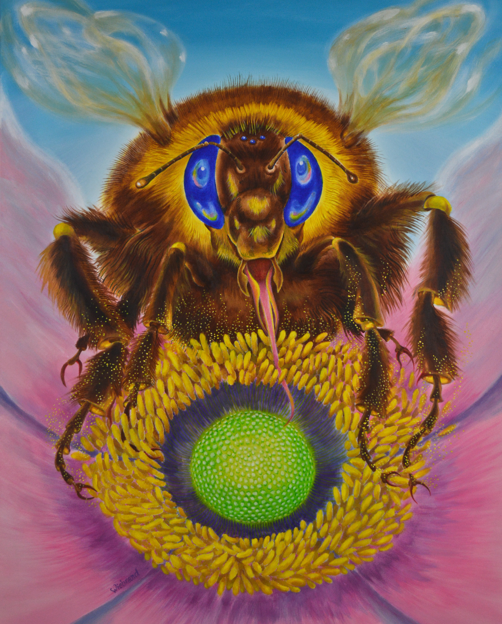 Hommels, vlinders, portretten, uitbundig bloeiende bloemen en levenslust zijn bij mij terugkerende thema’s. Soms overheerst de sereniteit, terwijl andere werken een dynamische indruk achterlaten. De boodschap die ik tracht uit te dragen is: vier het leven! De bloemen en insecten zijn rijkelijk aanwezig in mijn eigen tuin en directe omgeving. Zo zijn er meertjes, graslanden en zelfs een klein bos dichtbij. Al deze schoonheid vraagt om aandacht en verdiend het om geschilderd te worden.