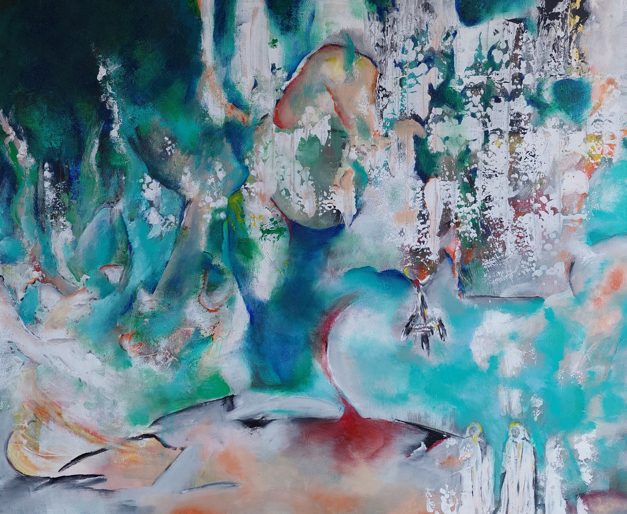 Sinds enkele jaren schilder ik vanuit mijn hart, intuitief ontstaan soms heel bijzondere elementen in mijn werk. Aan mij om dat wat verschijnt de aandacht te geven en het geheel te verbinden.