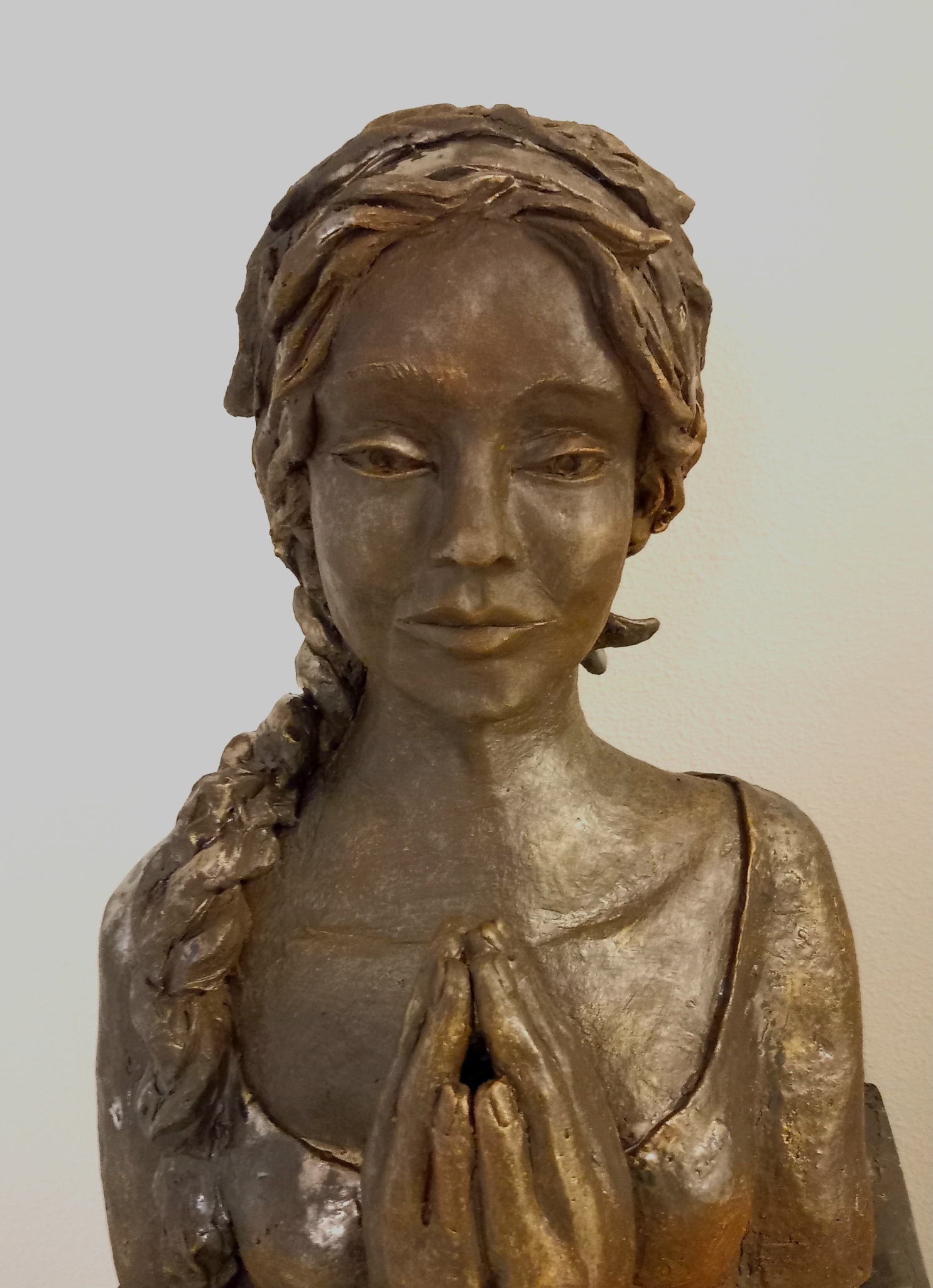 Prachtige keramische dame Namaste Uitgevoerd in bronsglazuur dus geschikt voor binnen én buiten
