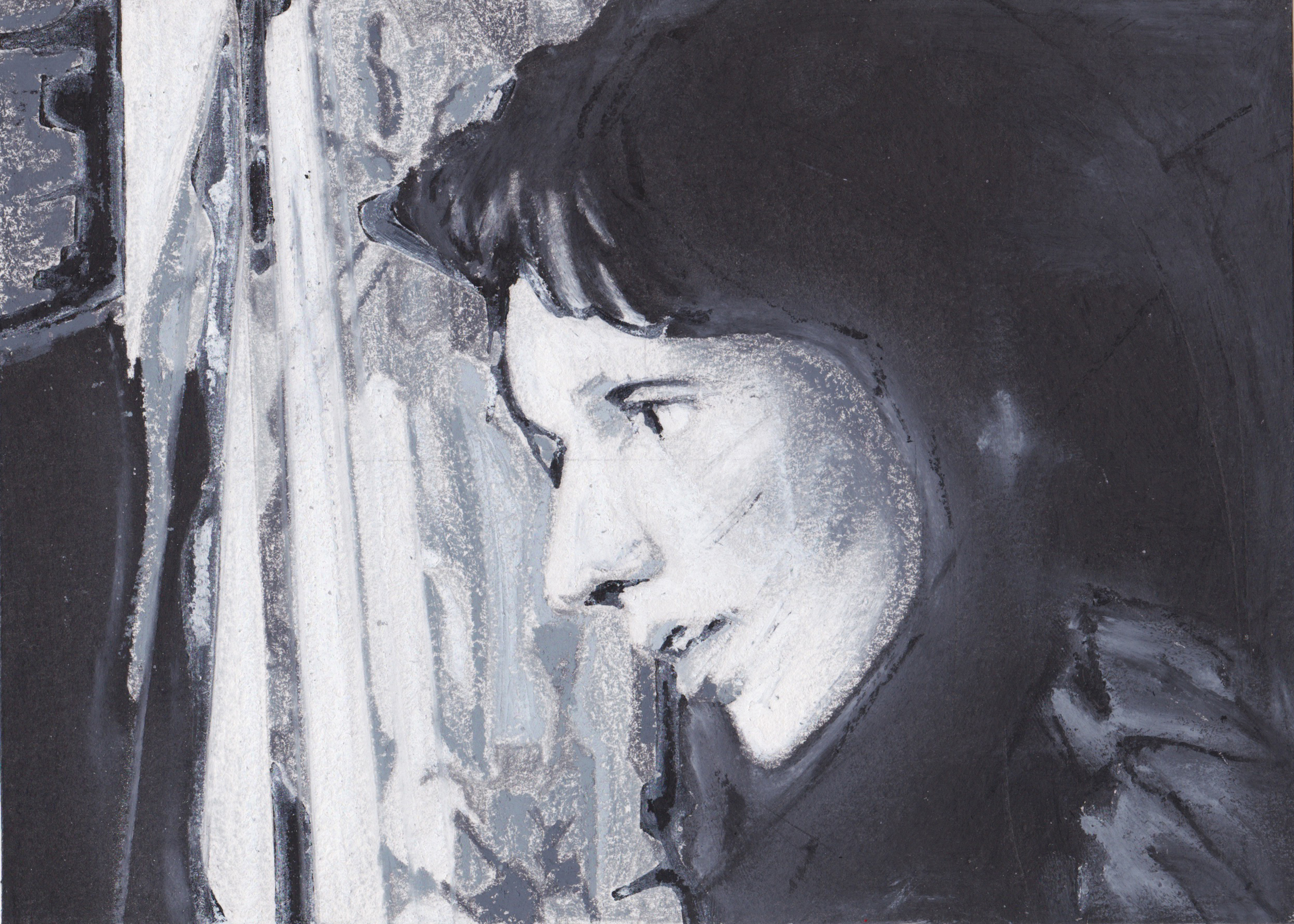 Portret gebaseerd op fragment van een krantenfoto, waarschijnlijk uit de Volkskrant, uitgegeven ergens tussen 2005 en 2018. Los van de context, los van de inhoud en los van de gebeurtenis probeer ik een vervliegend moment (niets veroudert zo snel als krantennieuws) langer vast te houden en te laten zien dat het altijd om mensen draait, ook al weten we niet wie het is. Dit werk maakt onderdeel uit van een groter werk, met als werktitel "Contempt"