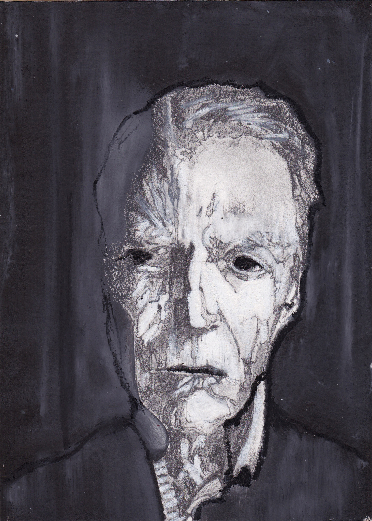 Portret gebaseerd op fragment van een krantenfoto, waarschijnlijk uit de Volksrant, uitgegeven ergens tussen 2005 en 2018. Los van de context, los van de inhoud en los van de gebeurtenis probeer ik een vervliegend moment (niets veroudert zo snel als krantennieuws) langer vast te houden en te laten zien dat het altijd om mensen draait, ook al weten we niet wie het is. Doordat het een onbekend maar heel sprekend portret is, neemt het karakteristieken aan van anderen.