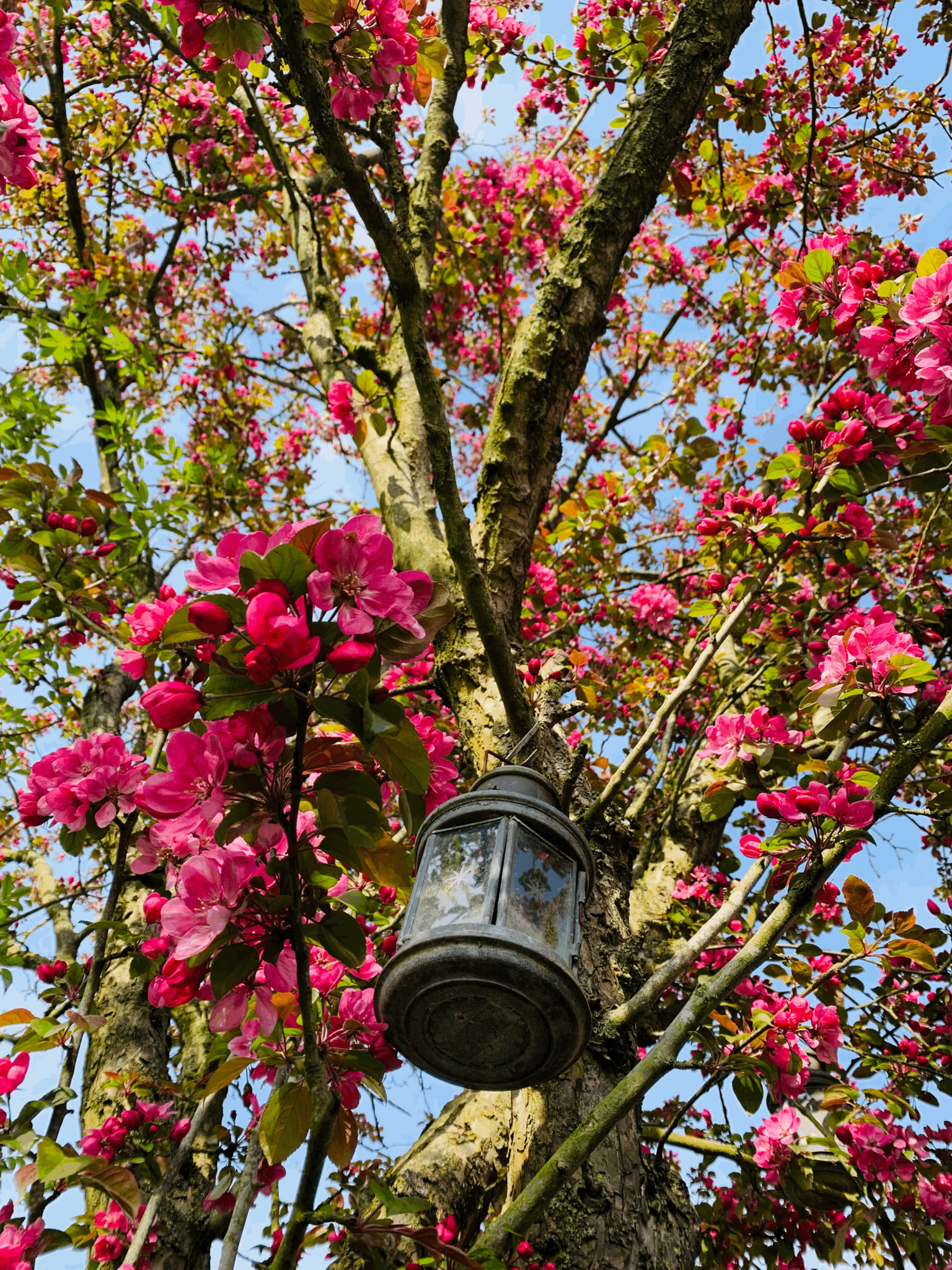 De prachtige bloesem met een krachtige rode kleur waar een klein lief appeltje uit groeit.