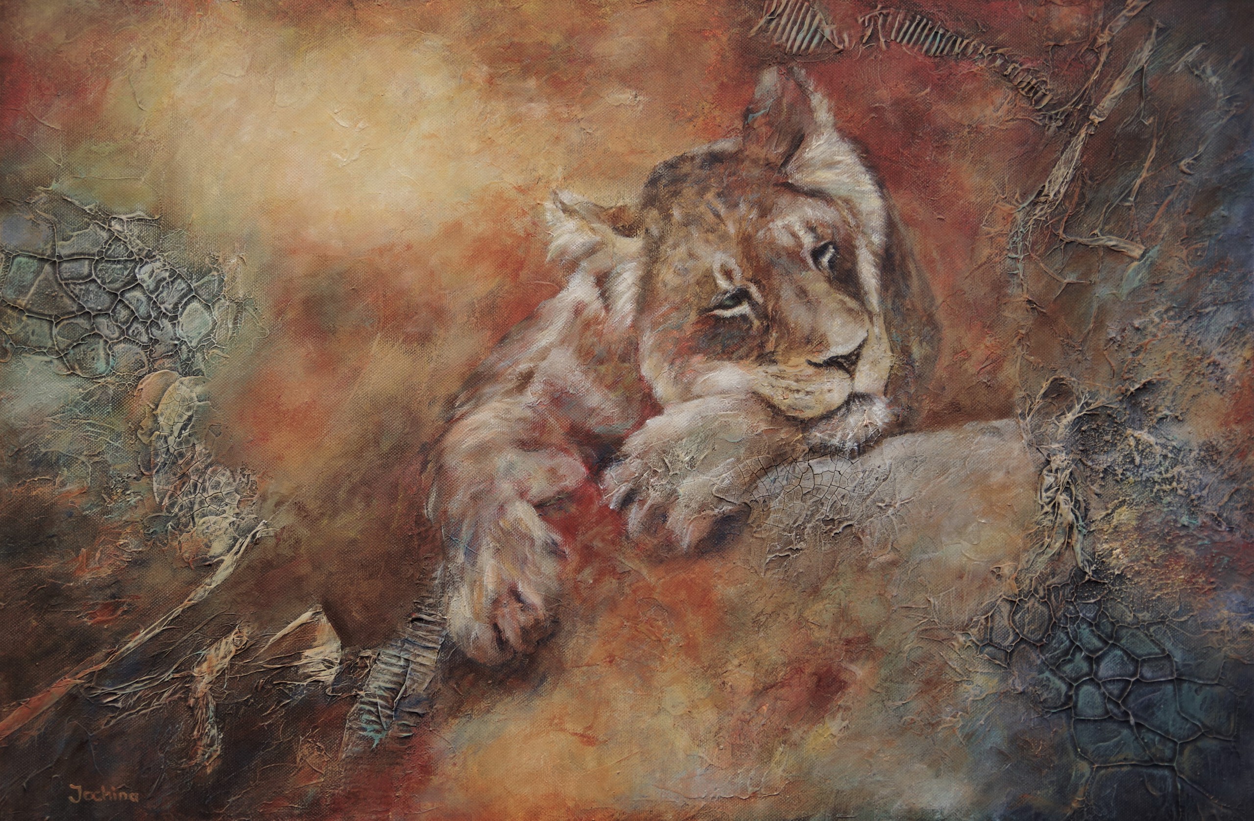 Leeuw Wildlife Mixed Media Lion Warm Abstraherend Geabstraheerd