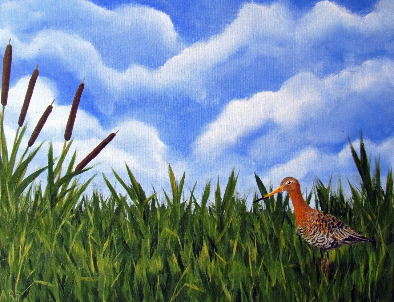 Schilderij Acryl Vogel Wildlife Dier Painting Acrylic Bird Animal Grutto Eempolder Godwit