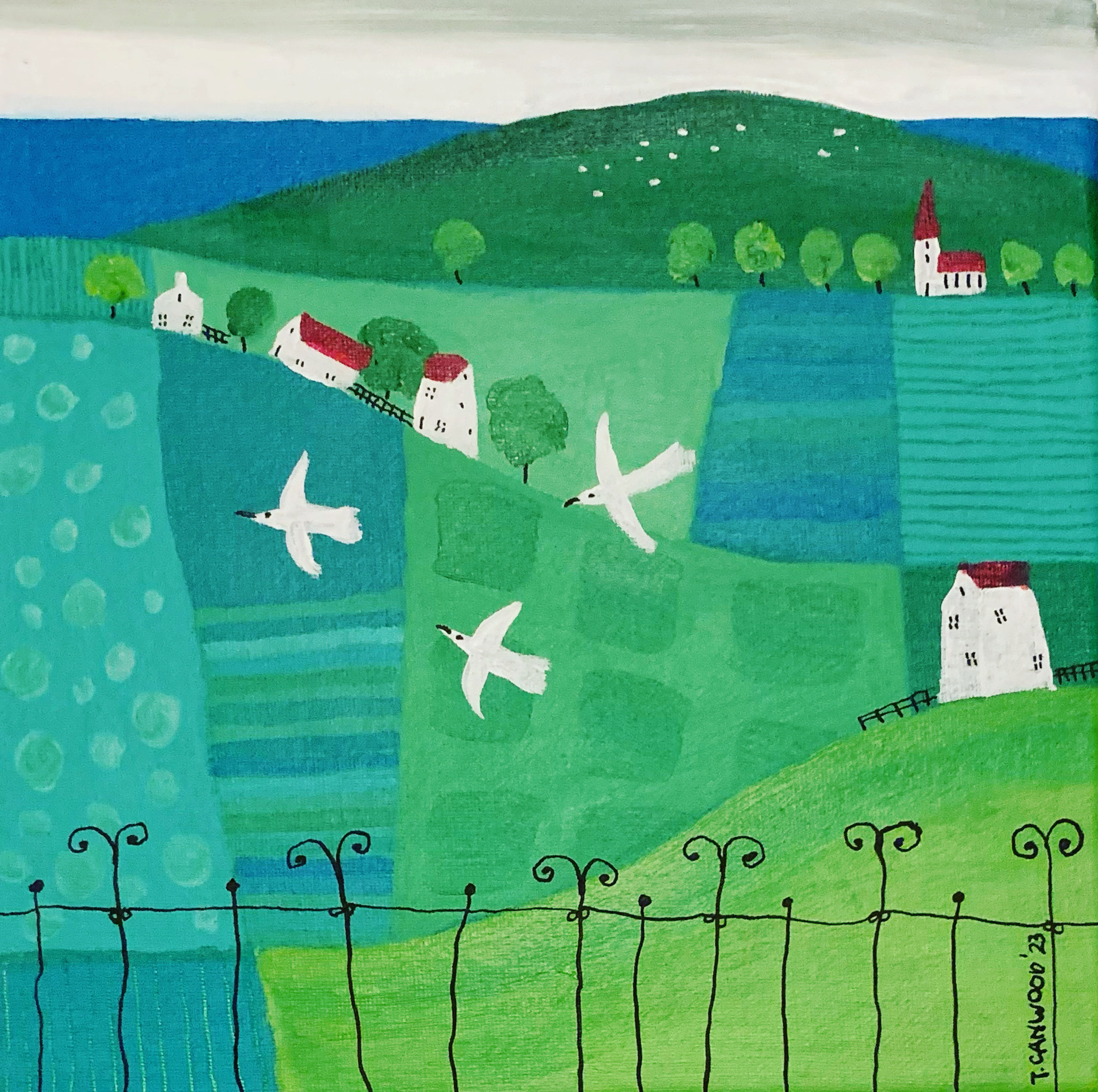 Trudie Canwood is professioneel kunstenaar en maakt kleurrijke schilderijen en zeefdrukken met af en toe een uitstapje naar tekeningen en linosneden. Zij exposeert regelmatig in binnen- en buitenland