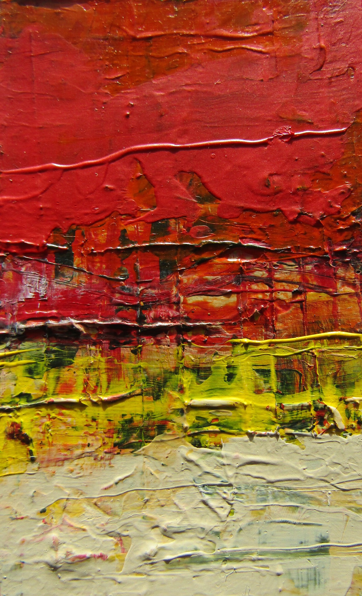 Rood Geel Wit Landschappelijk Miniatuur Abstractie Poëtisch Lyrisch Minimalistisch Paintingfield Kunstwerk