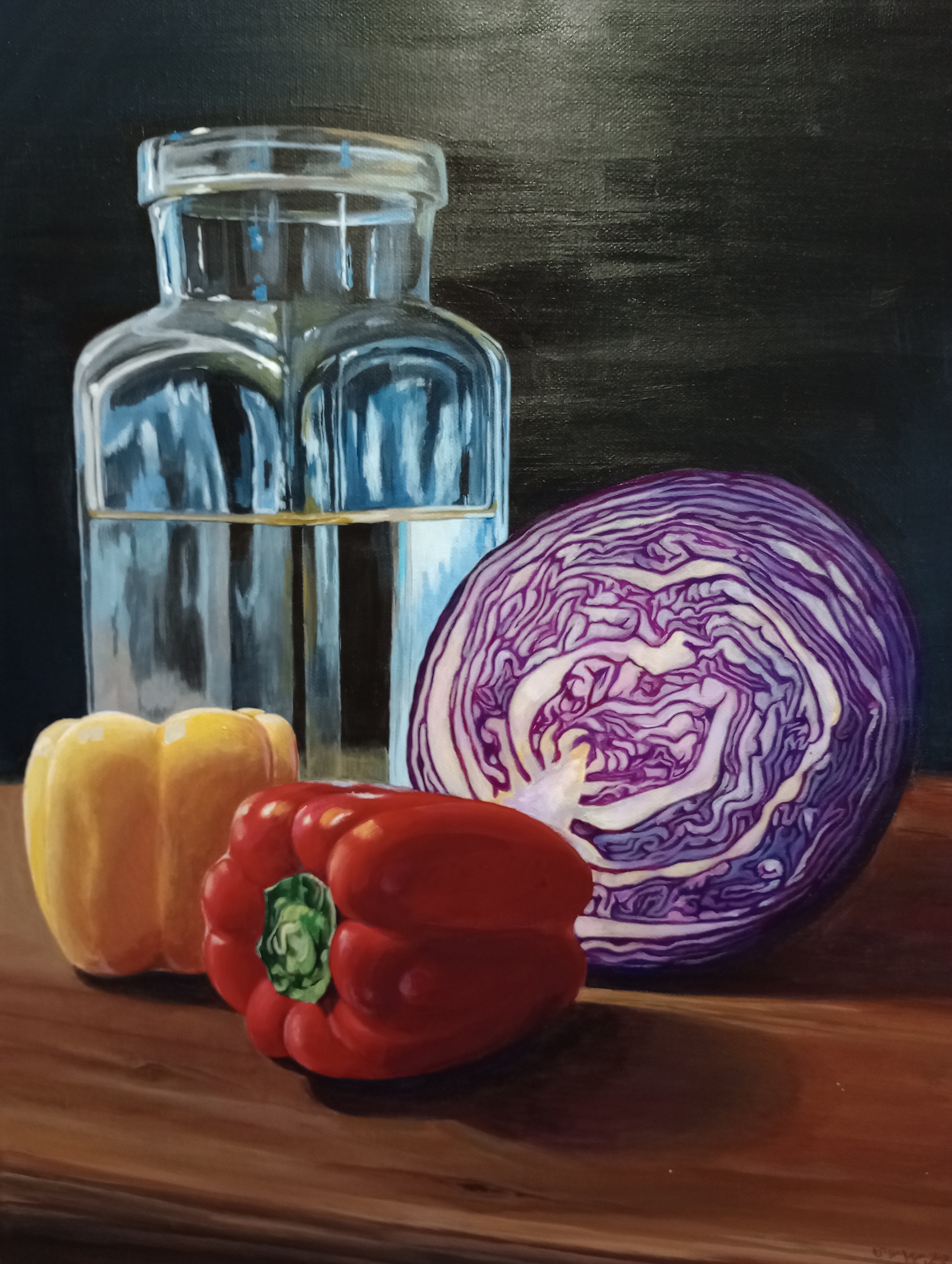 Water Kleurrijk Paprika Realistisch Doek Acrylverf Stilleven Kool
