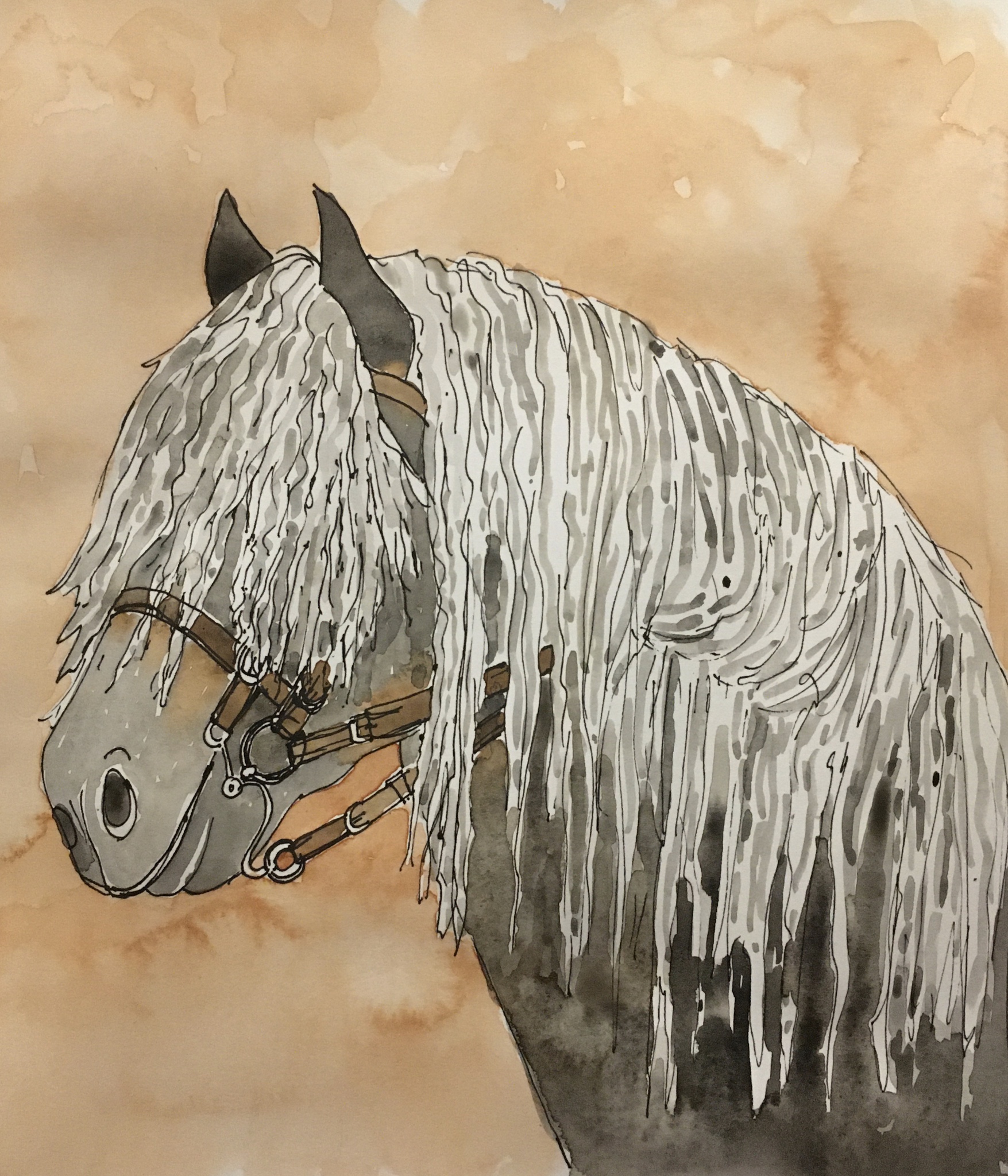 Paard Manen Bruin Pentekening Aquarel Gemengde Techniek Dier Papier Realistisch