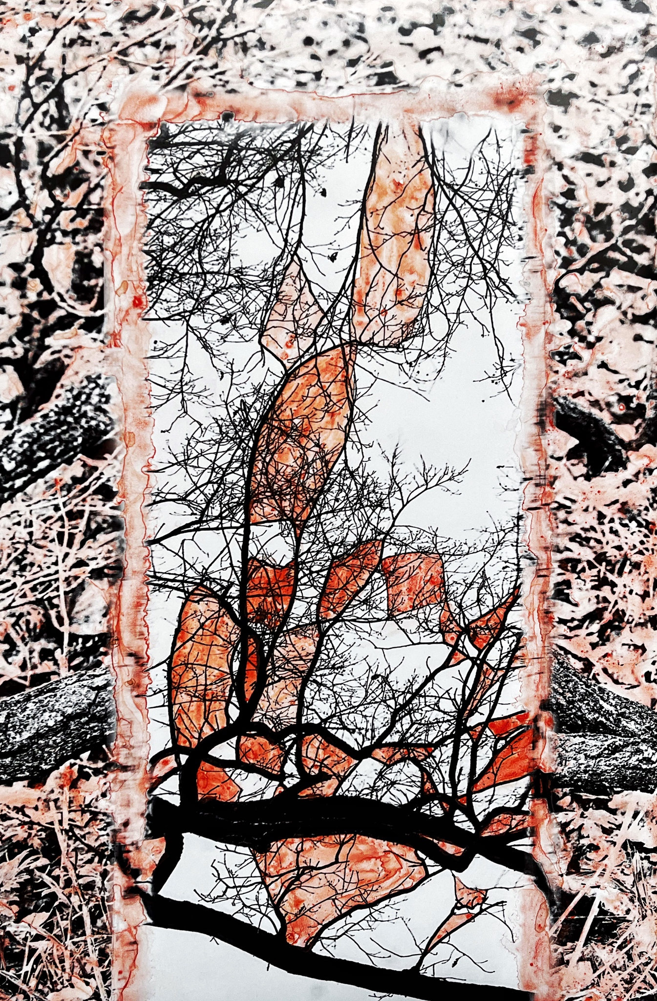 Schilderijen als wandelingen in een fictief landschap: natuurelementen die op elkaar inspelen, al dan niet met menselijke ingrepen.
