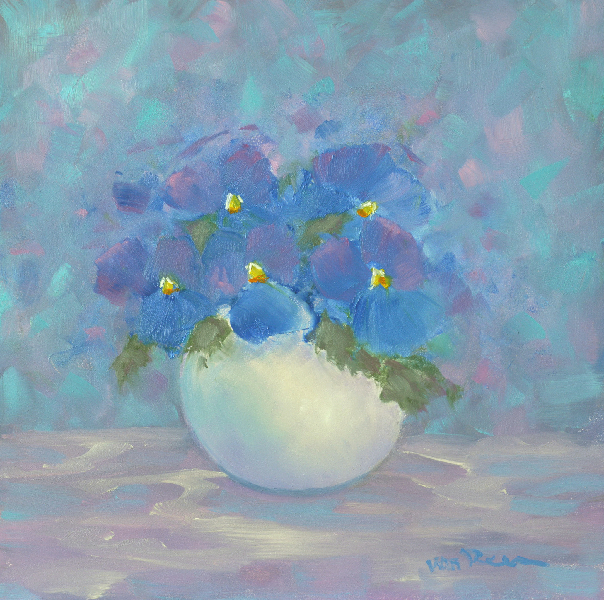 Roeland van Reem schildert met olieverf op linnen of op paneel . Belangrijke thema's zijn; bloemstilleven, strand, zee, sneeuw- en polderlandschap.