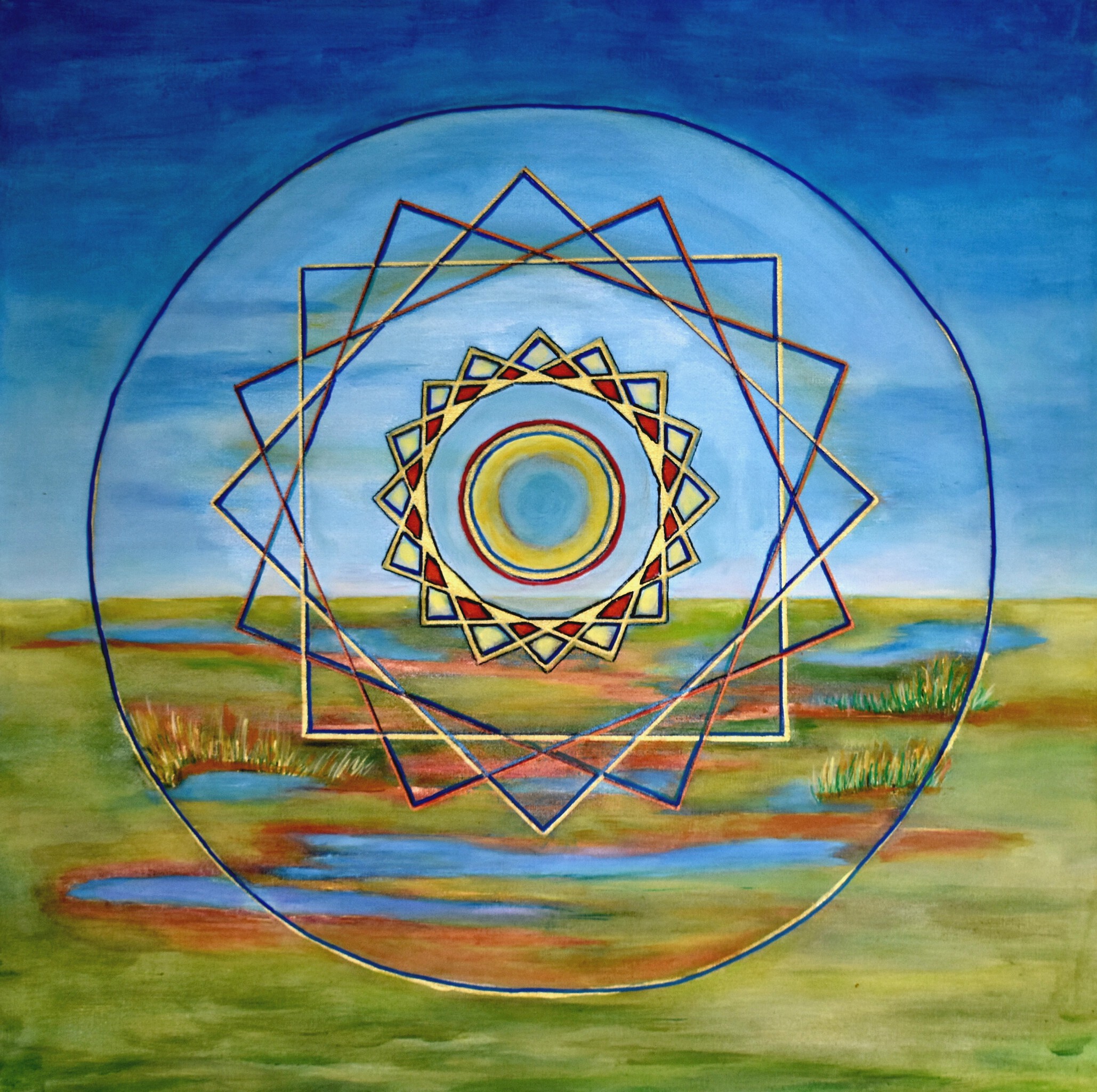 Meditatieve, symbolische kunst en bijzondere mandala's. Verrassende, kleurrijke tekeningen en schilderijen in acryl en zandpasta.