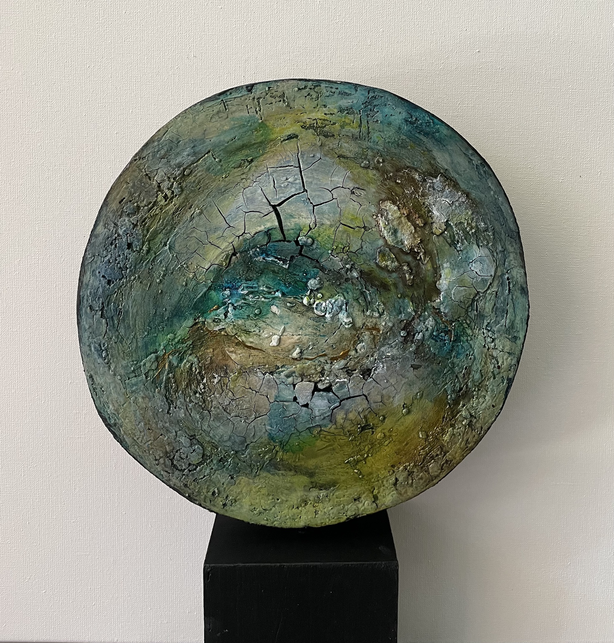 Ik raak geïnspireerd door de wereld om me heen. Mijn werk ontstaat door het onderzoek en experimenteren met verschillende materialen zonder vooropgezet plan.