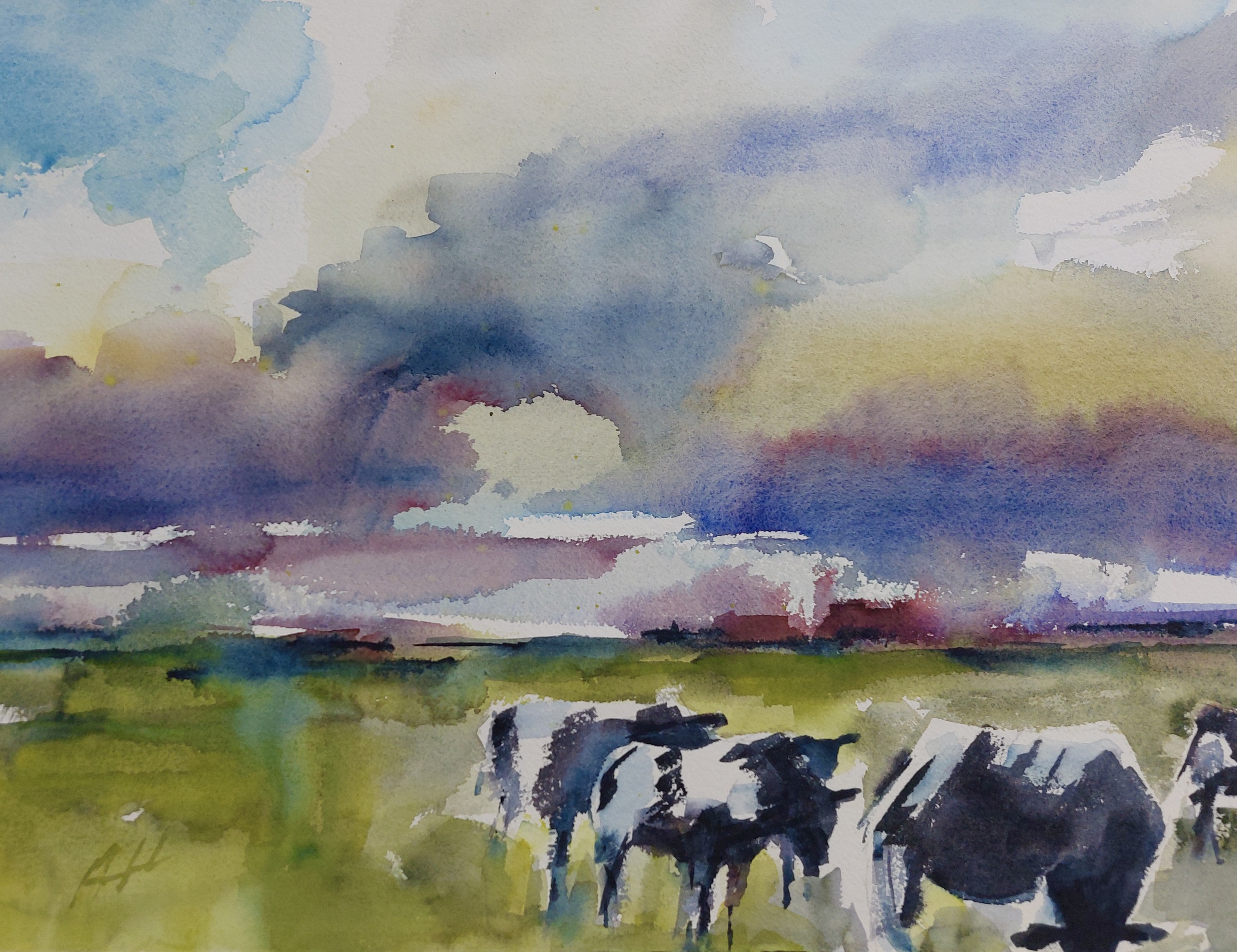Landschap Aquarel Koeien Nieuwkoop Kouwenhoven Aad Aarlanderveen