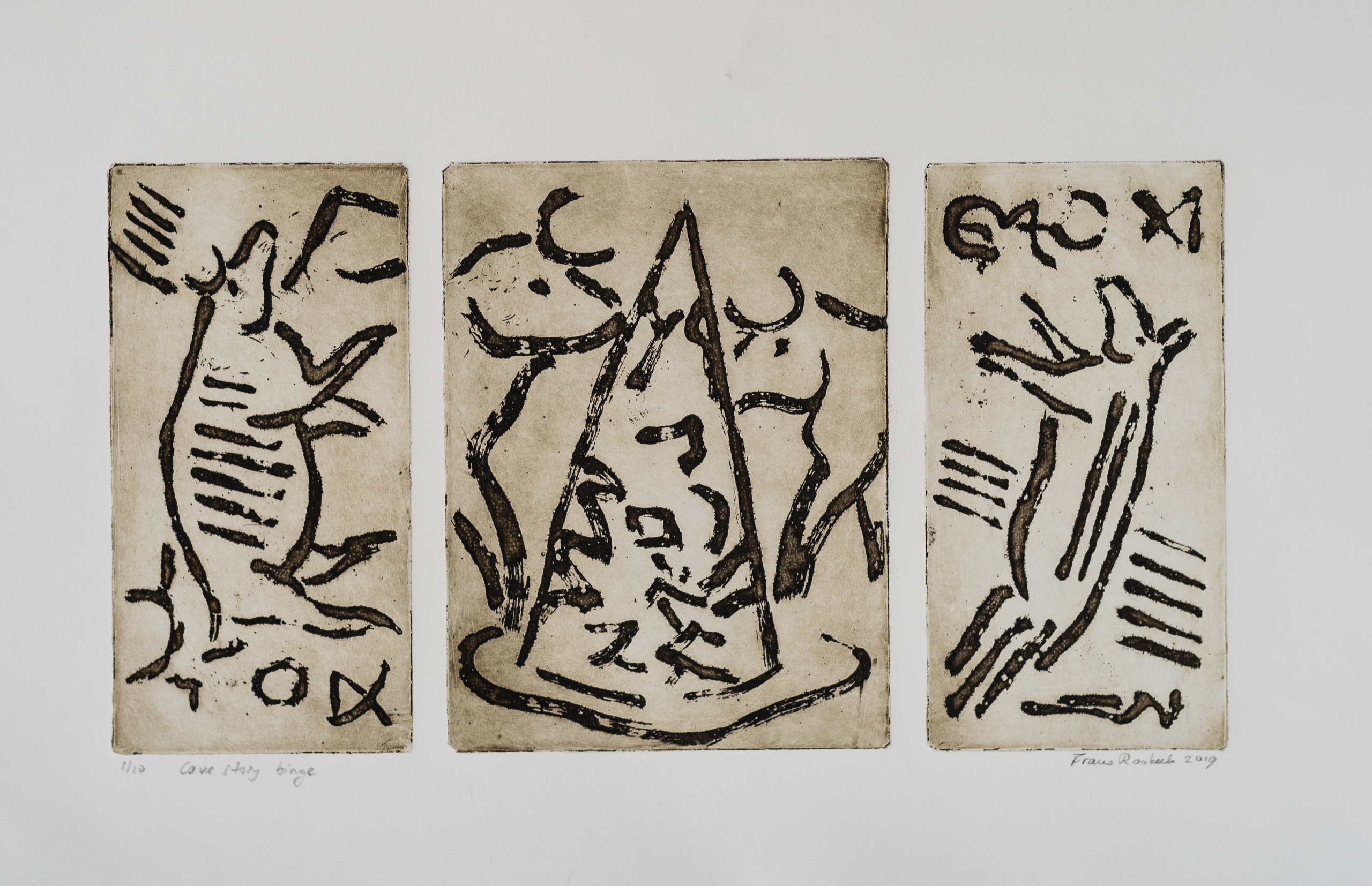De beeldtaal van de mensen die heel lang geleden tekeningen maakten in grotten is buitengewoon intrigerend. Mijn interesse hierin werd verdiept door het lezen van het boek Pinturas Rupestres, met de ondertitel Lectura, significado e historia, van G.C Aethelman. Geinspireerd door zijn boek heb ik op die beeldtaal aansluiting gezocht.