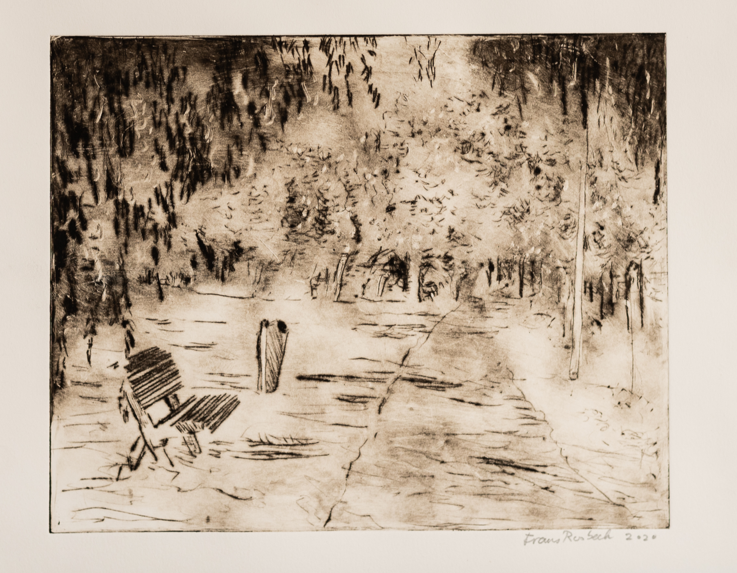 Een mooie plek om te verblijven, om te blijven. Techniek: ets.