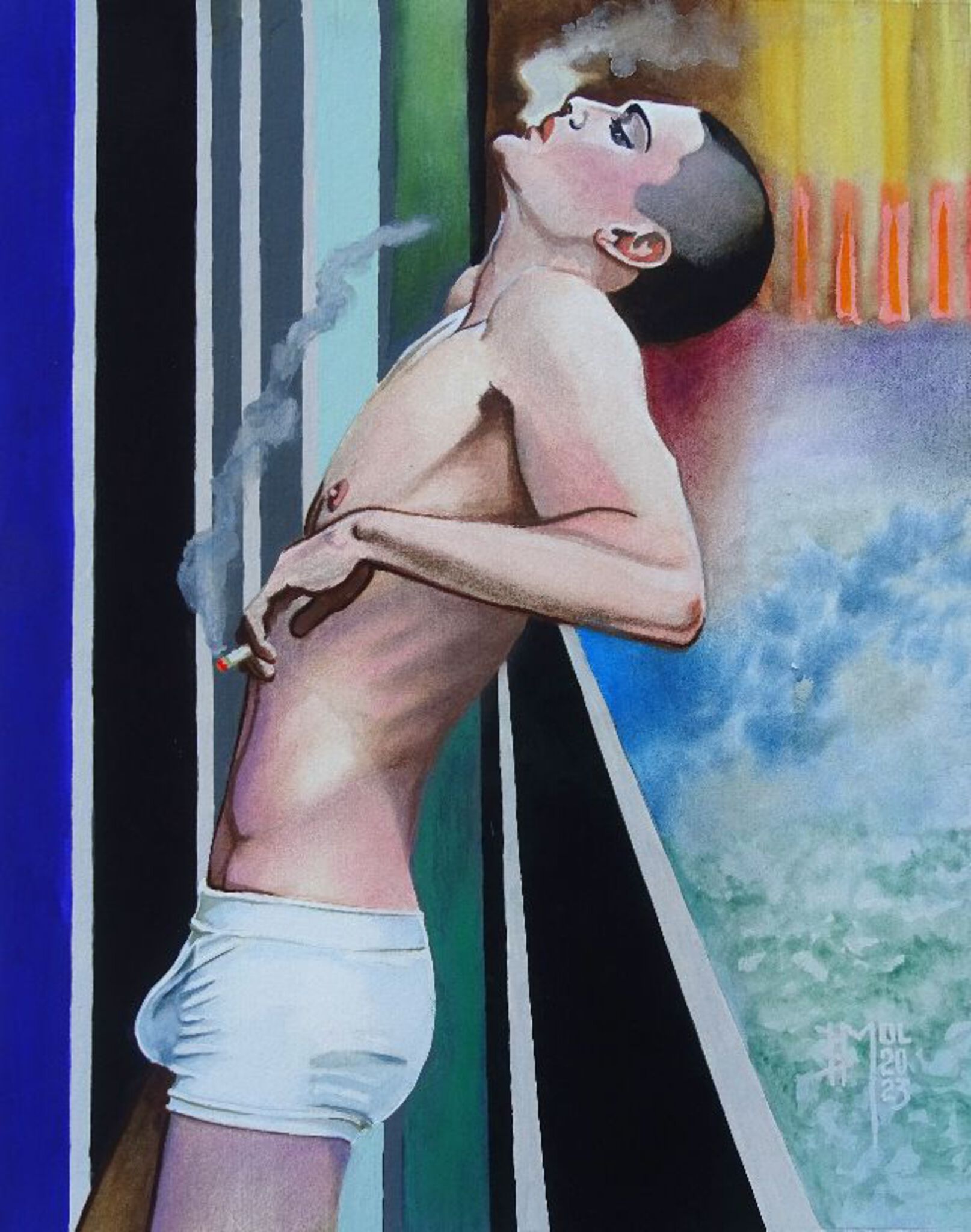 Jongen Man Art Schilderij Bastiaanmol Bastiaanmolart Lhbti Illustratie Dutchartist Queer Queerartist Gay Gayboy Smoking Cigarette Underpants Whitebriefs Relax