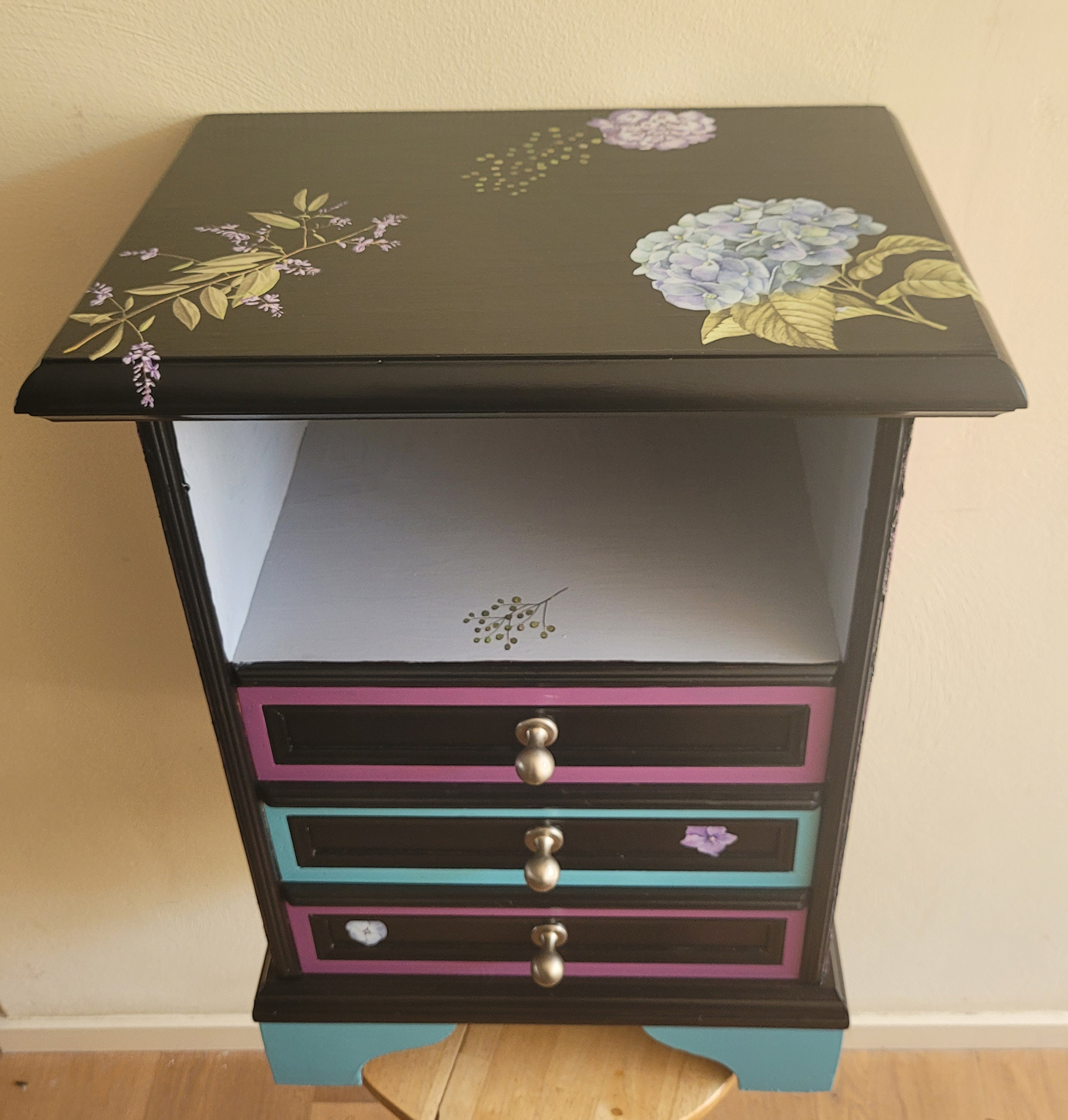 Een simpel nachtkastje heeft een transformatie ondergaan en is nu te mooi om in de slaapkamer te zetten.