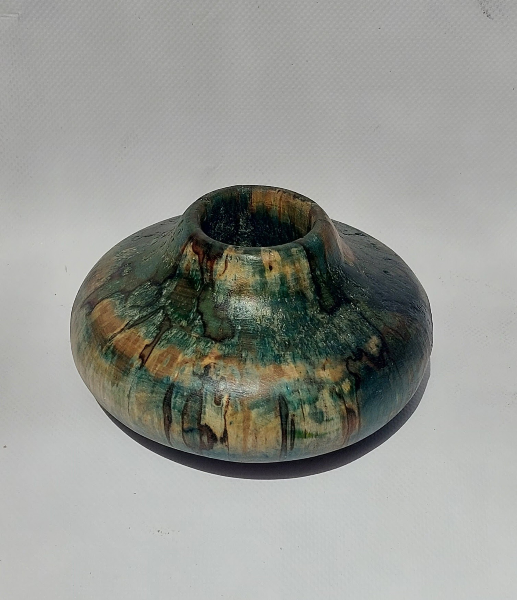 houten urn bewerkt met pigment en epoxy
