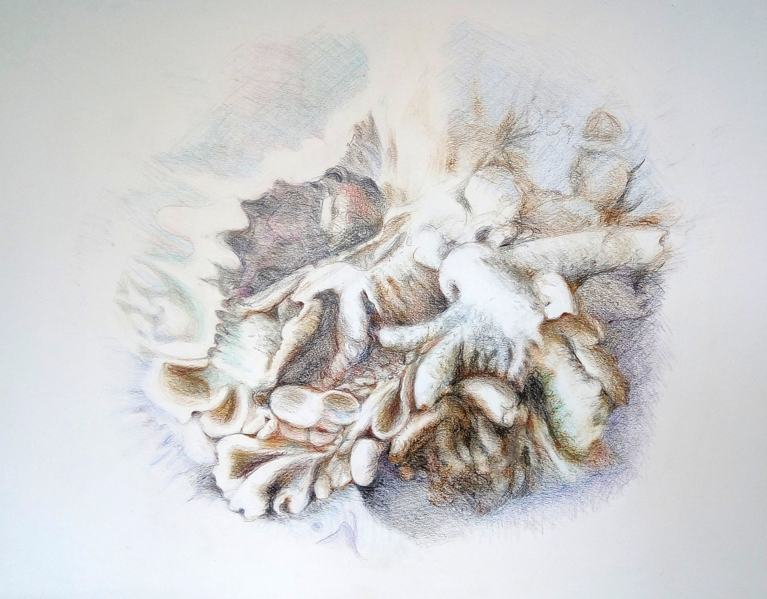 kleurpotloodtekening van korstmos ( van onder de microscoop)
