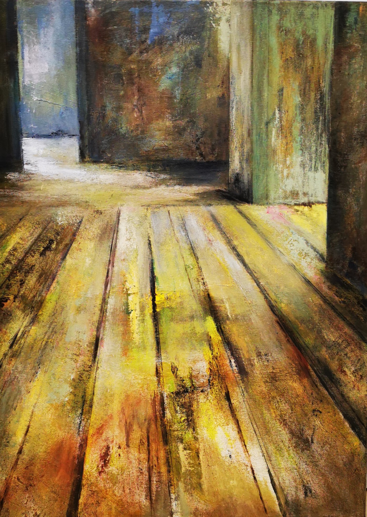 Ik kreeg mijn schildersopleiding aan de Academie te Brugge. Met mengtinten van grijs, blauw en oker roepen mijn schilderijen een beeld van vergankelijkheid op.