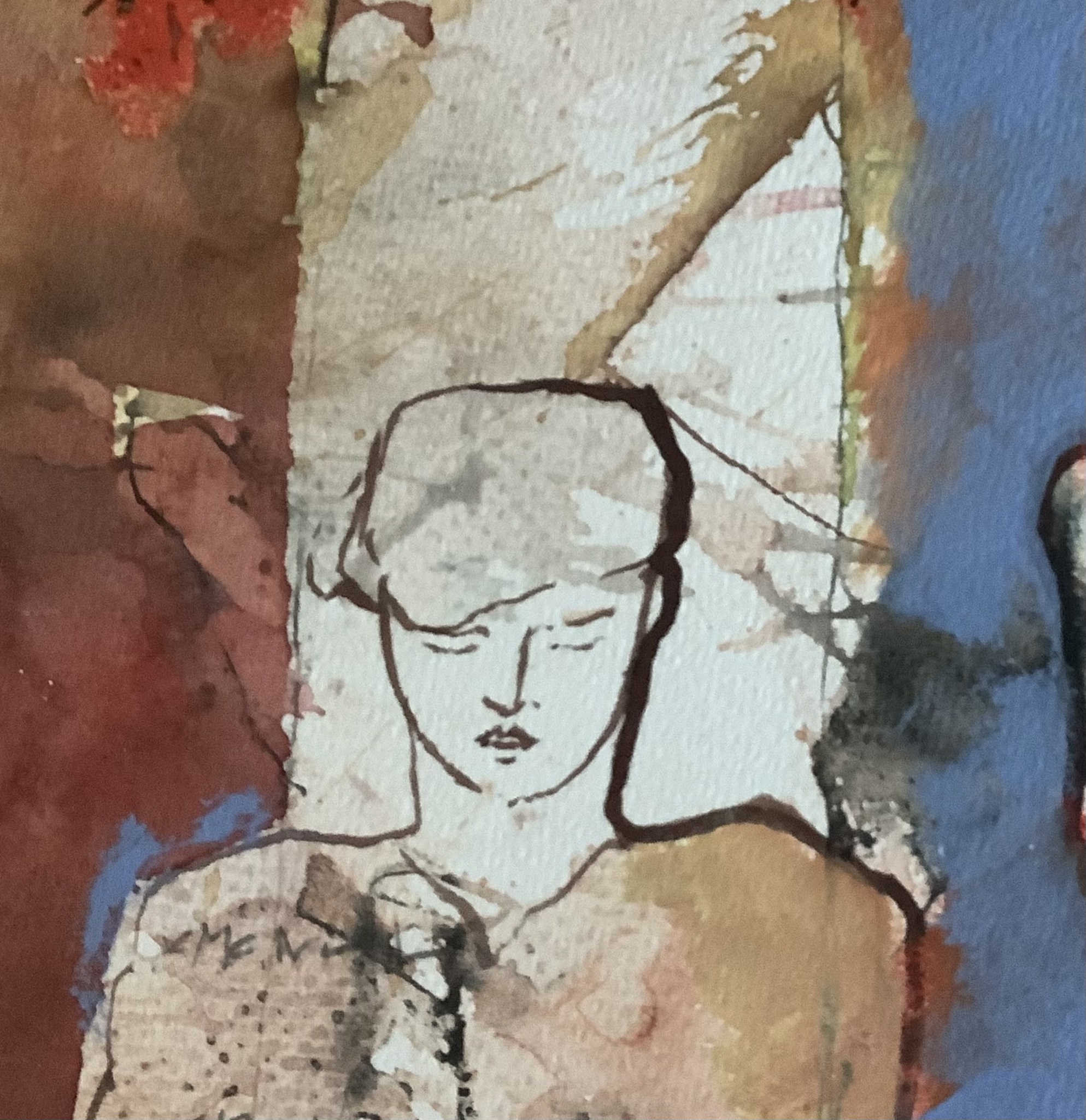 Een kleine aquarel van een vrouwenfuguur , binnenmaat 12-12 en past in lijstmaat 25-25. ,zie voor inlijsten kunst als cadeau.