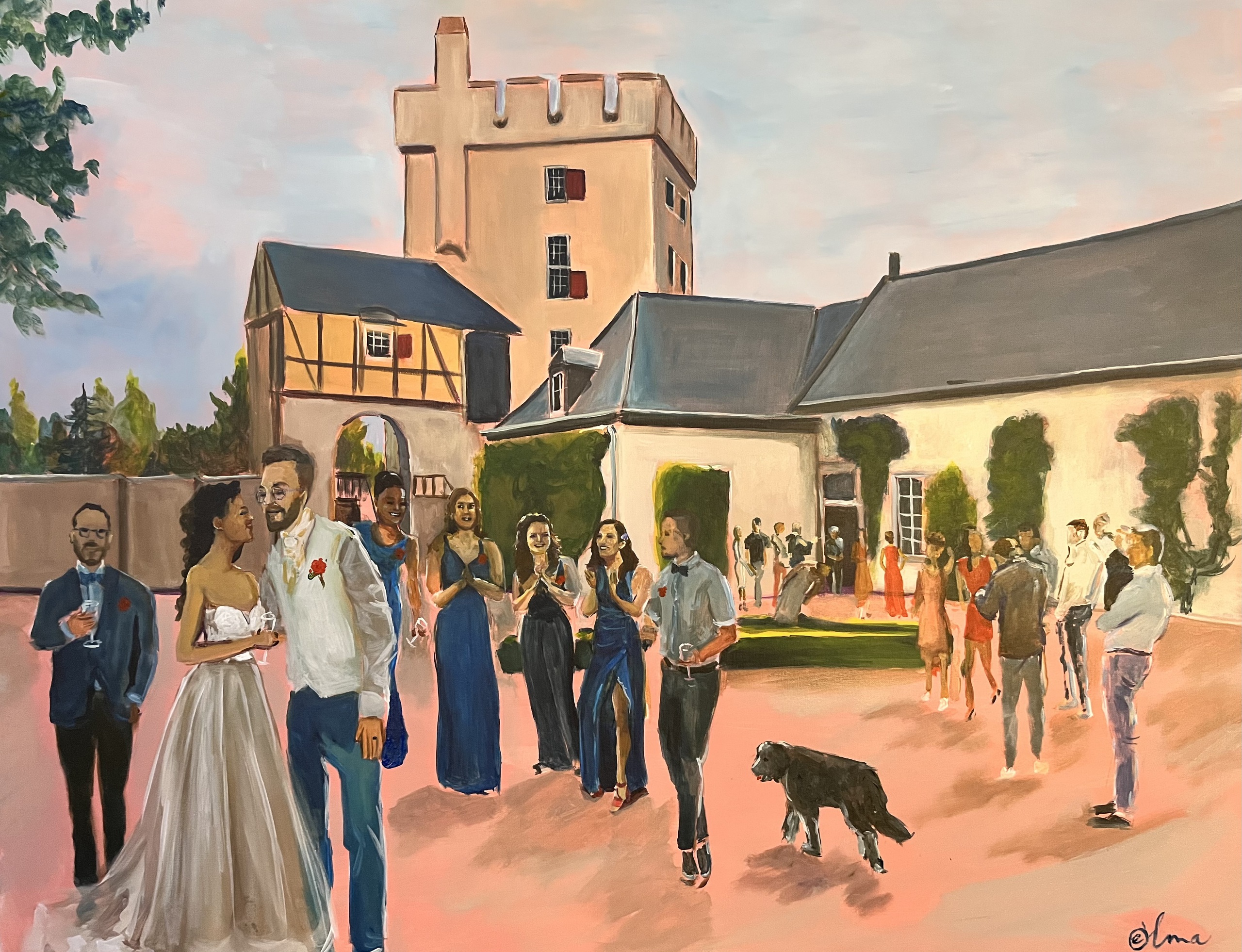 Live tijdens de bruiloft geschilderd