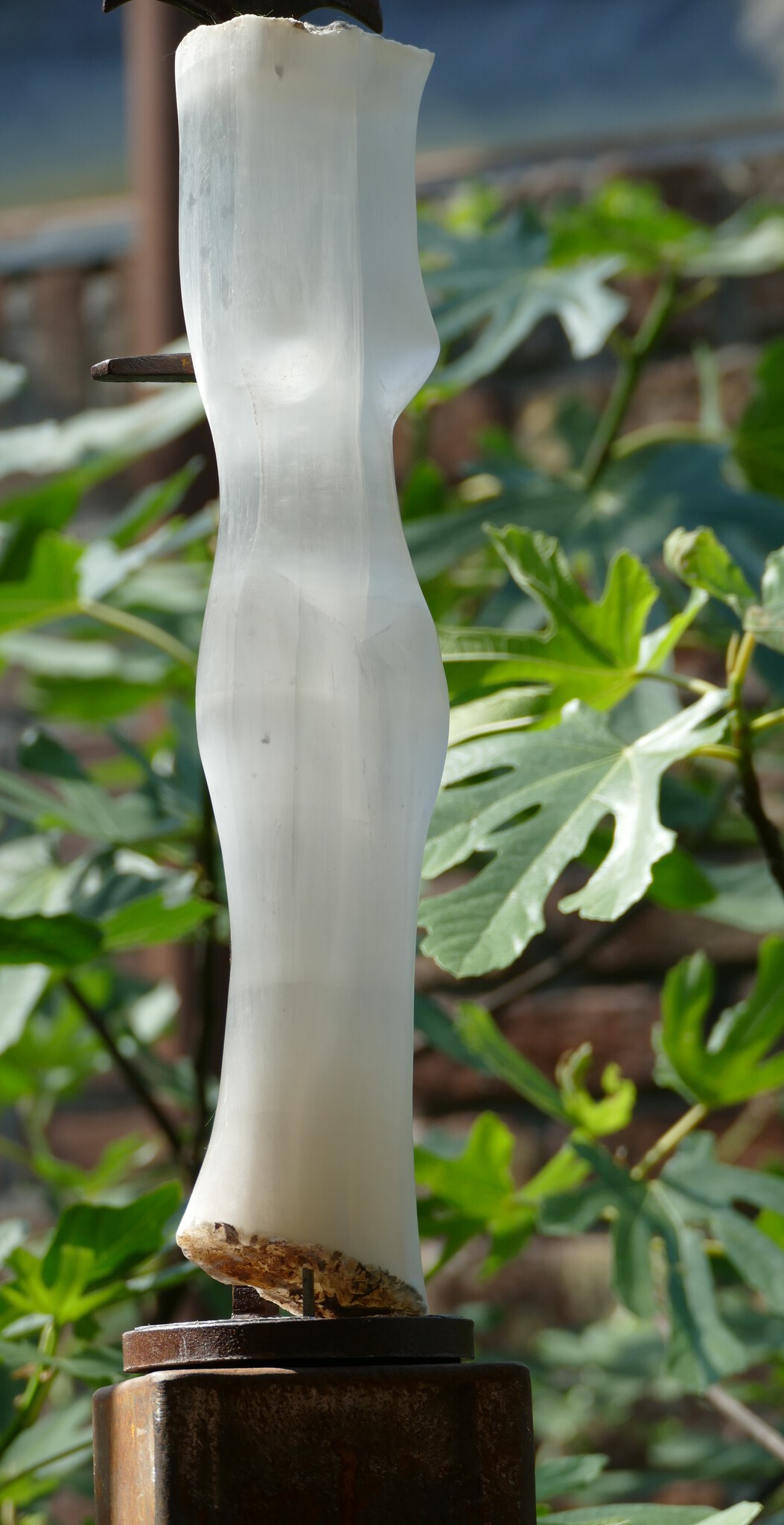 Prachtig transparante tors van seleniet gezatte taege un ald waeggeval met koper ingelag