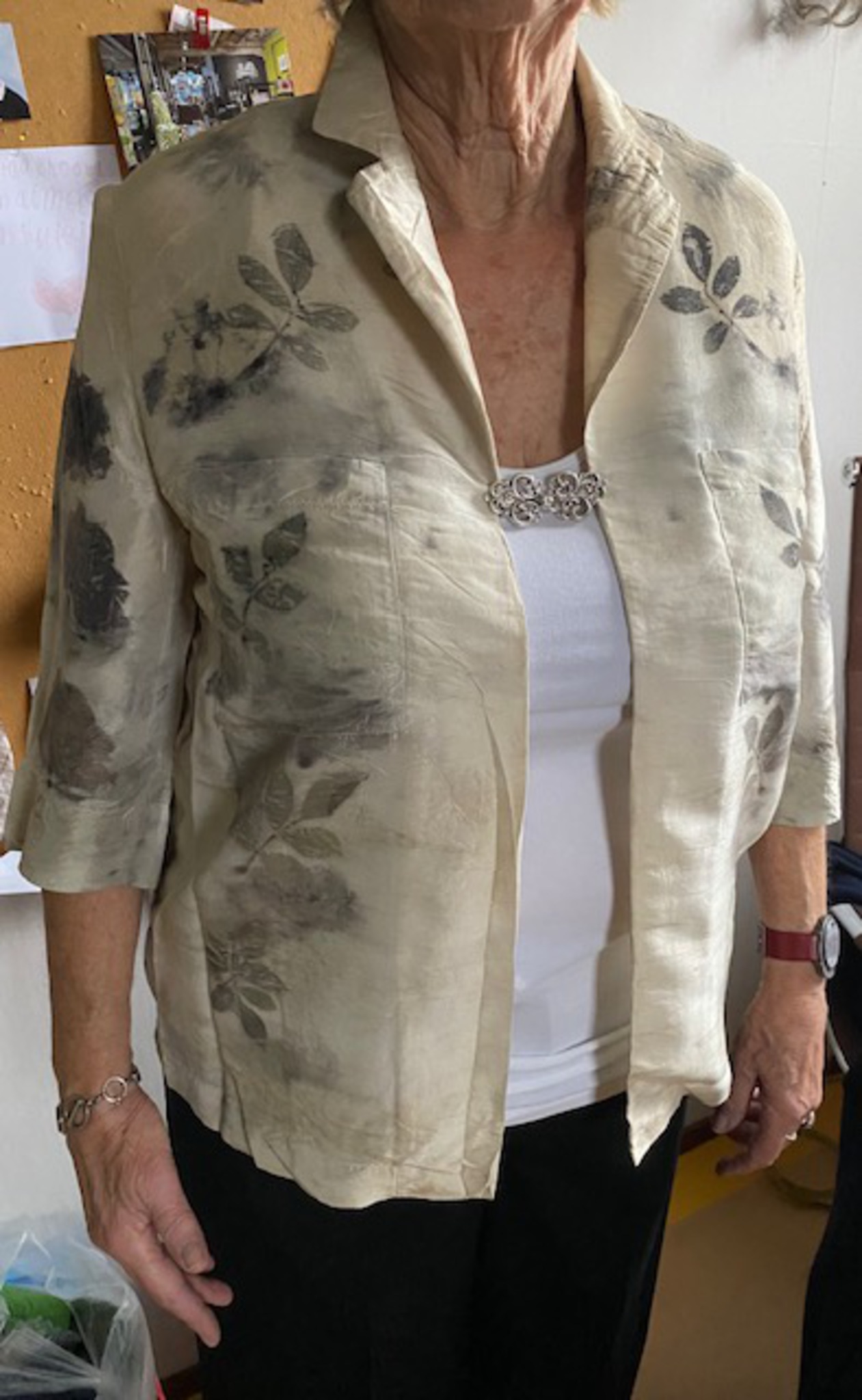 Na jaren vilten ontdekte ik ecoprinten, dwz uit bladeren en bloemen de afdruk weergeven op textiel of papier. Vooral werken met geitenleer heeft mijn voorkeur. Ik maak er vaak tasjes van.