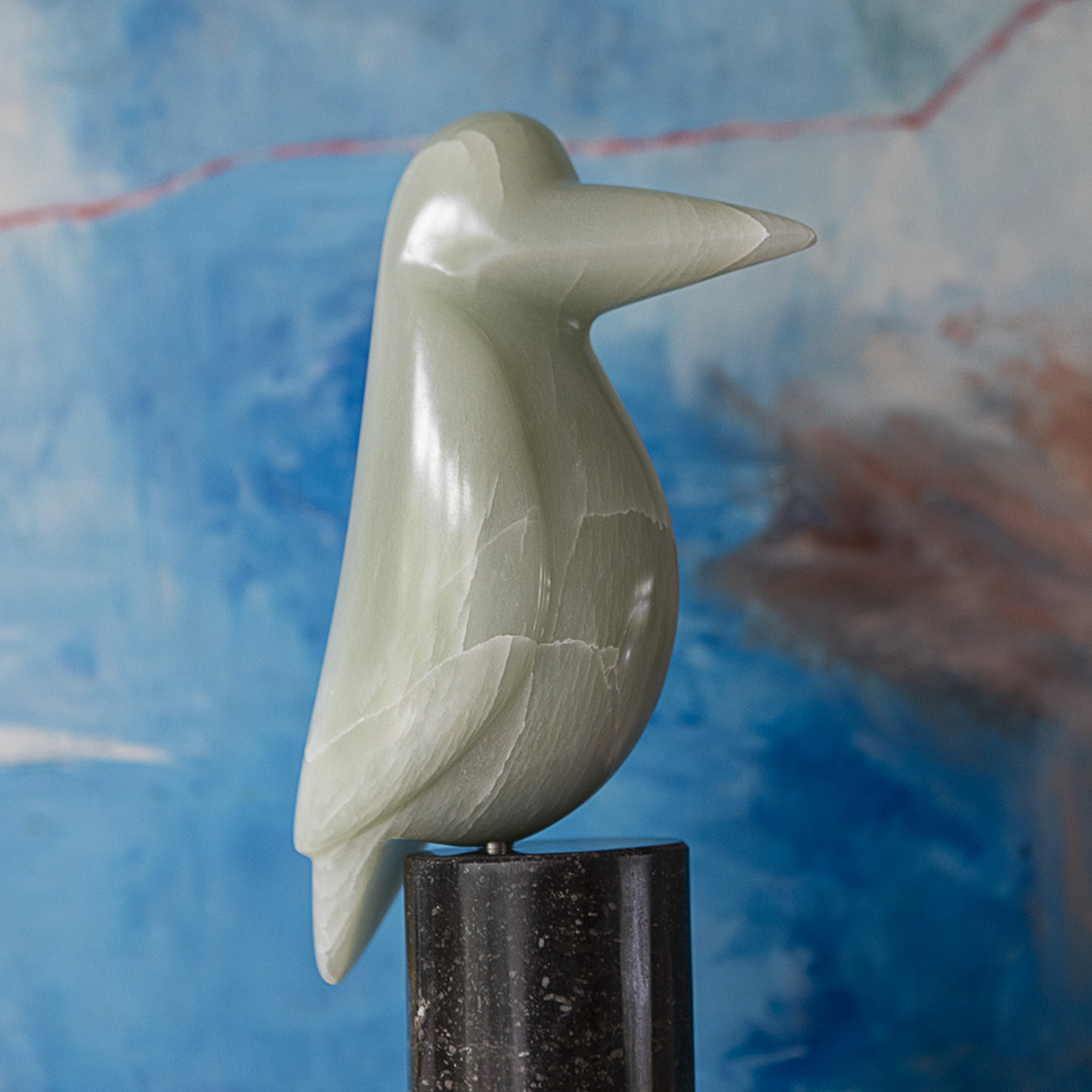 ijsvogel van groen Indisch speksteen op sokkel van arduin