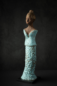 Omarm het leven is mijn eerste beeld, gemaakt in de corona periode. Met dit beeld wilde ik de vreugde en vrijheid uitstralen waar iedereen toen zoveel behoefte aan had. Het beeld is gemaakt van zwartbruin bakkende aardewerk klei. Afgewerkt met een mat glazuur en verschillende tinten glazuur.