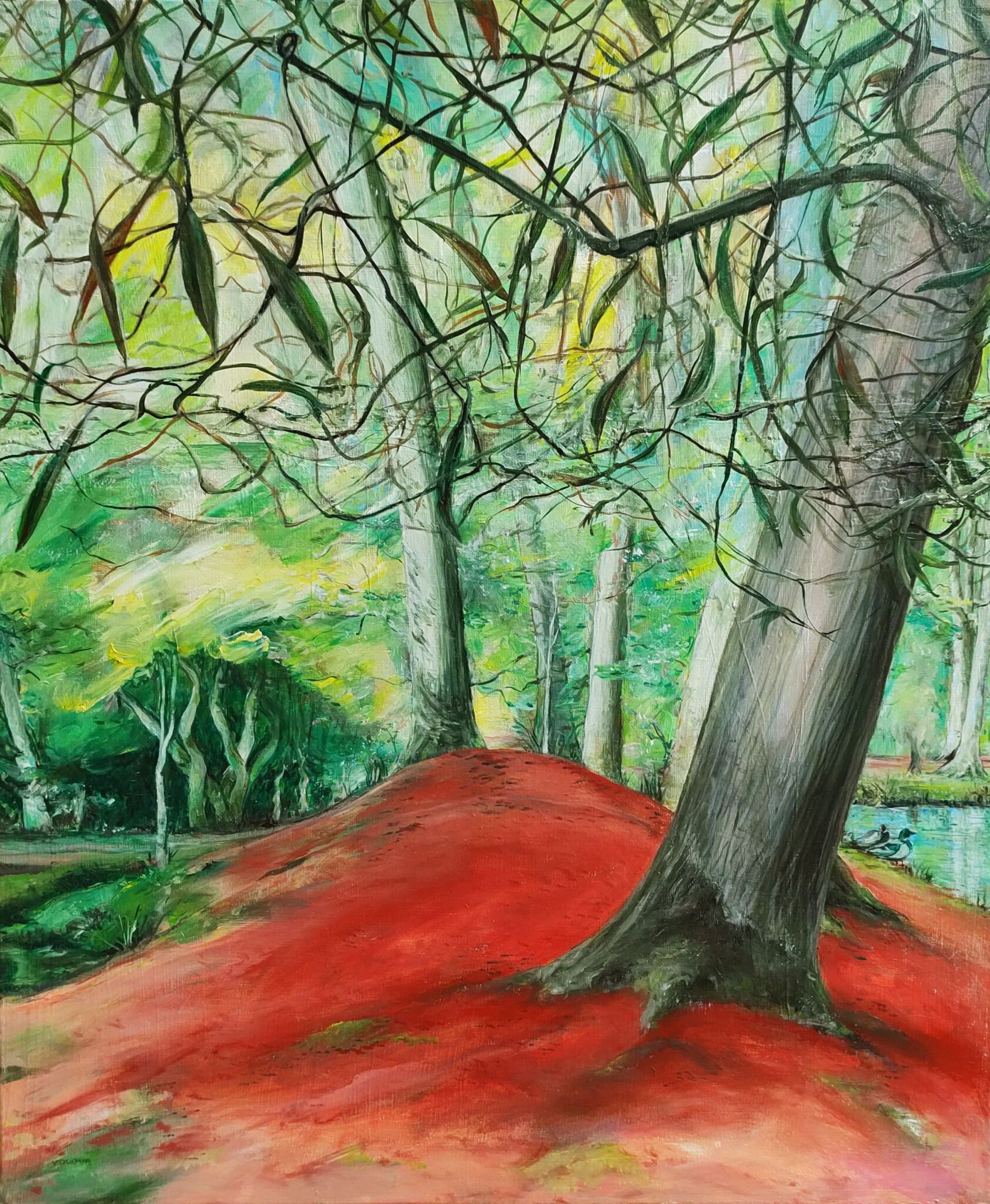 Japanse Tuin Natuur Groen Realistisch Olieverf @artvolova