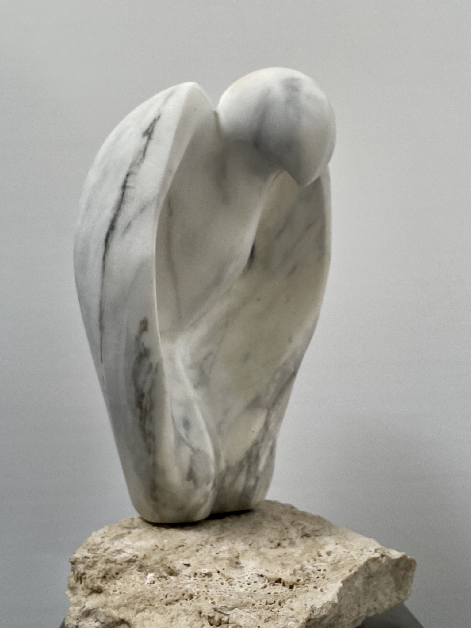 Mijn werk kenmerkt zich door een directe manier van werken. Wat mij aantrekt in steen is de hardheid die ik kan omvormen zodat er beweging en leven van de steen zichtbaar wordt.