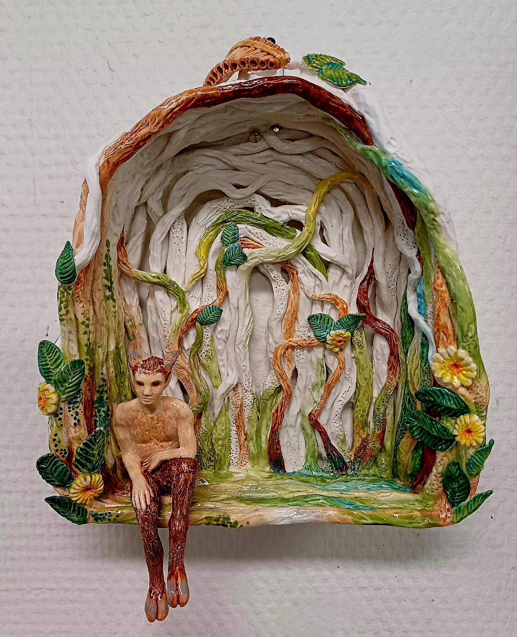 Saskia Van Aubel maakt keramische werkstukken, schilderijen, tekeningen en bloemobjecten van textiel.