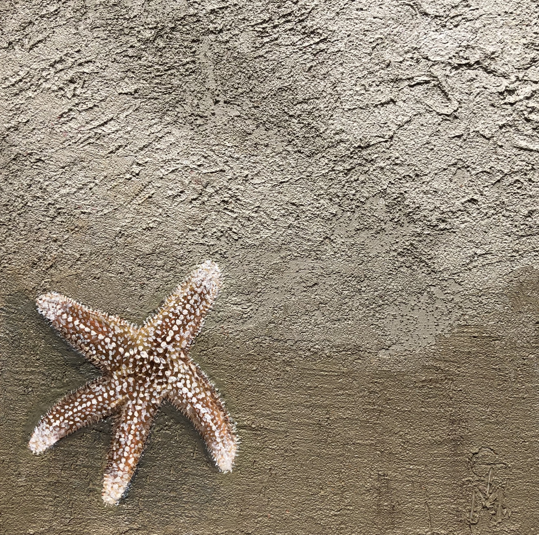 zeester op het strand, achtergrond geschilderd met Texels zand en olieverf