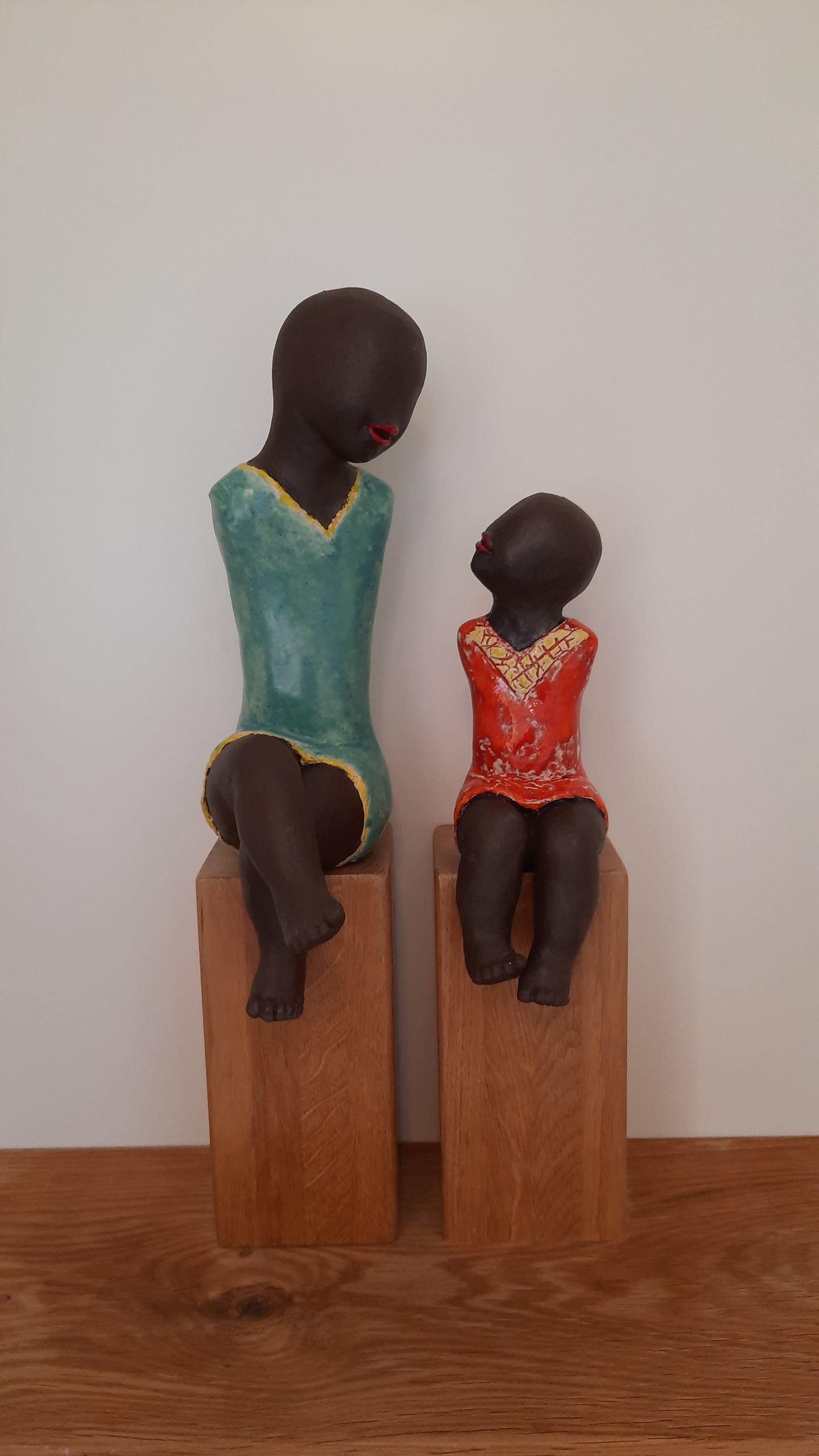 Kind Kleurrijk Moederen Beeldje/keramiek/