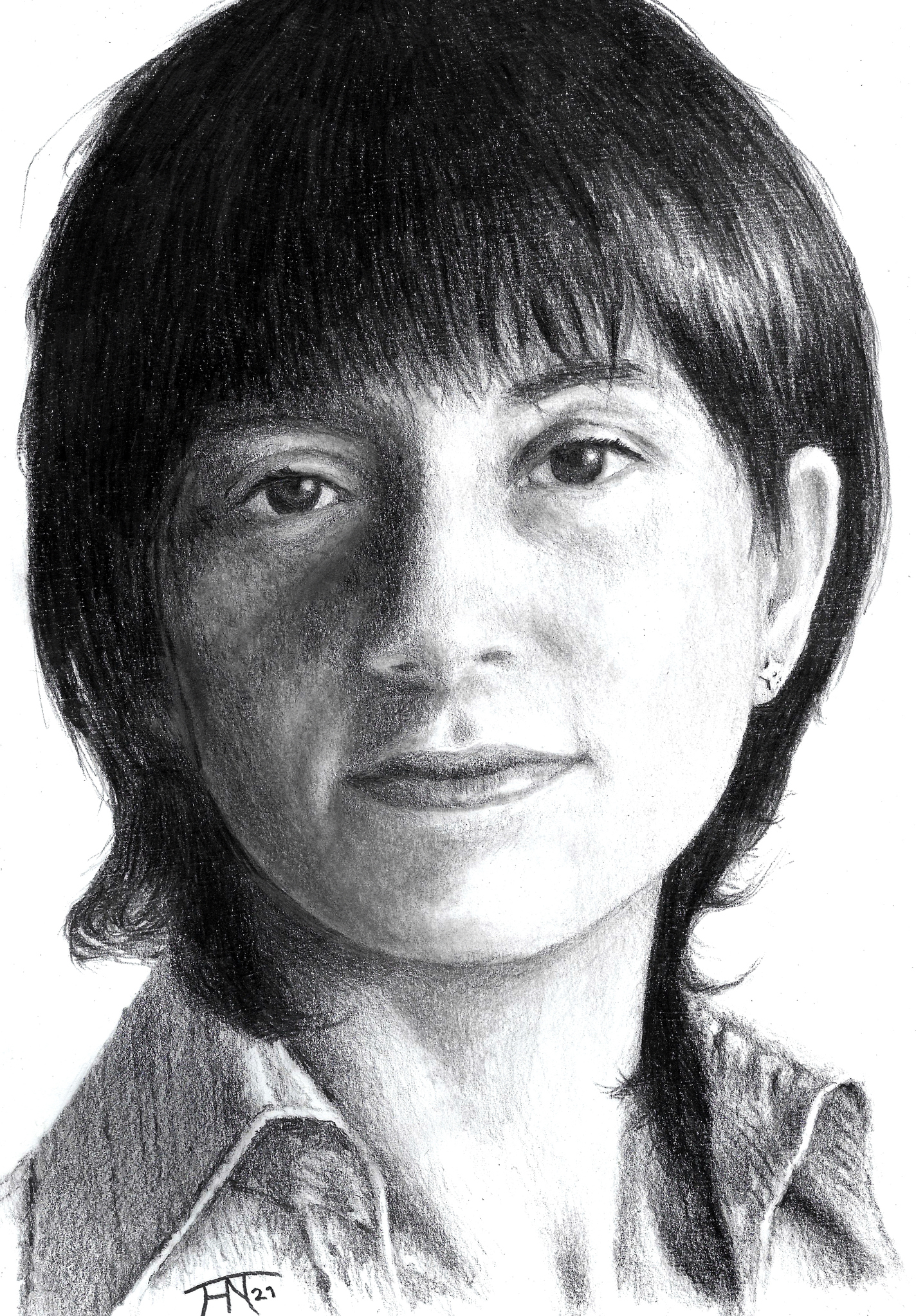 Ik heb van een mooie foto van mijn ex collega en onze vriendin Stefania een schitterende potlood tekening gemaakt.