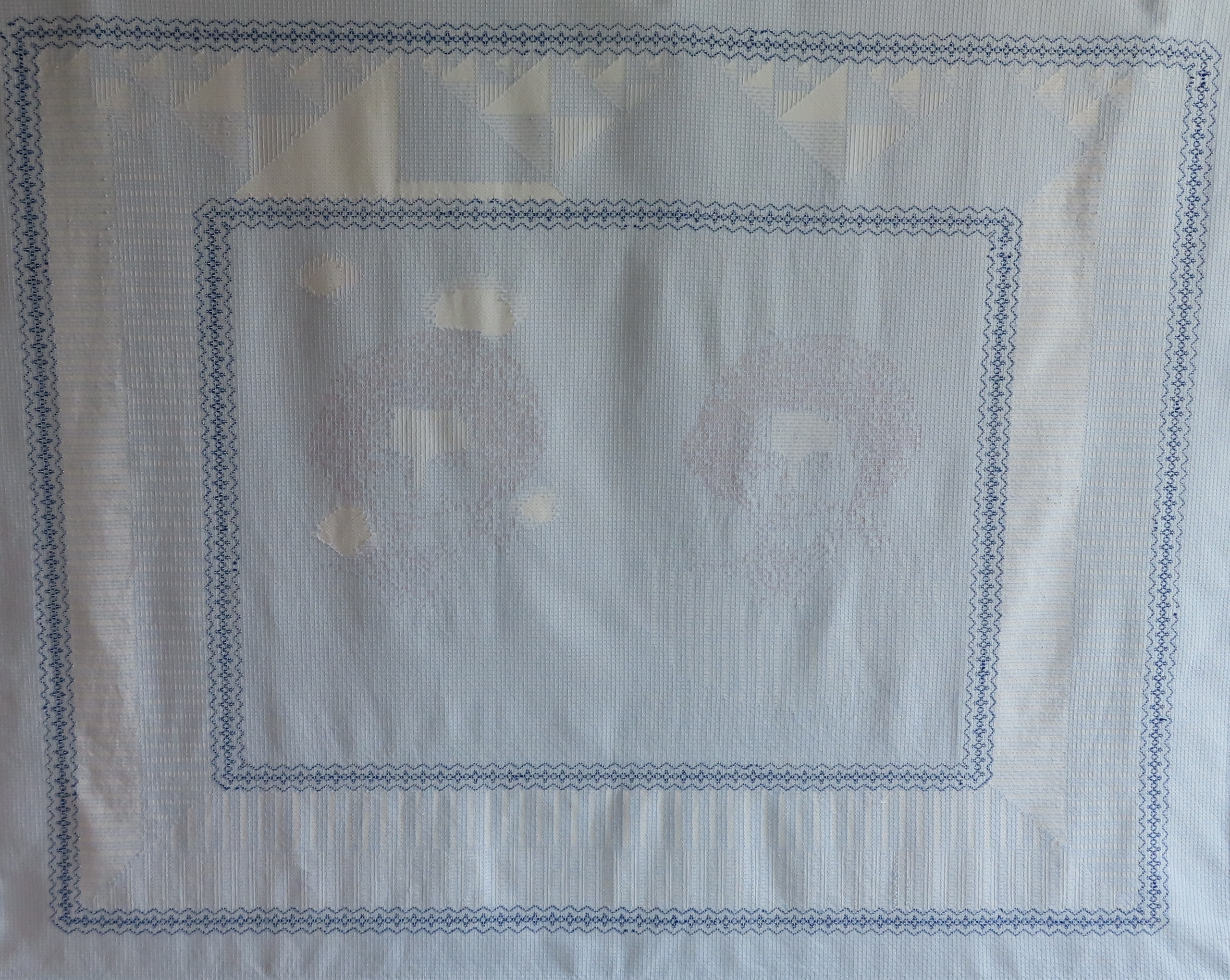 Bestaande, gevonden stoffen zijn uitgangspunt en basismateriaal voor mijn werk. Door het borduren, het toevoegen van lagen of door draden weg te nemen ontstaan intuïtief poëtische beelden.
