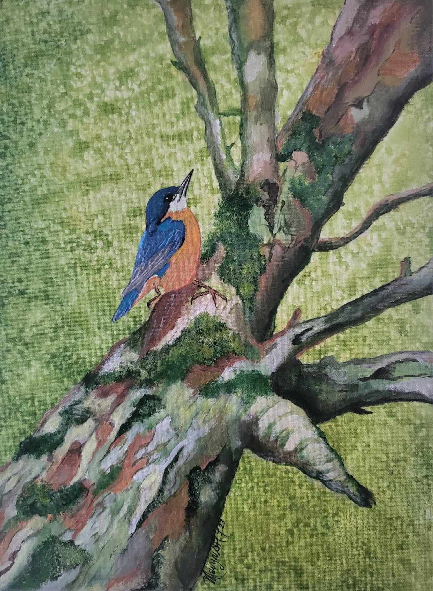 Ik heb me eerlijk gezegd het meest geconcentreerd op de boomstam. Het vogeltje valt helemaal niet zo op , maar is een pareltje dat ik in het echt nooit gezien heb.