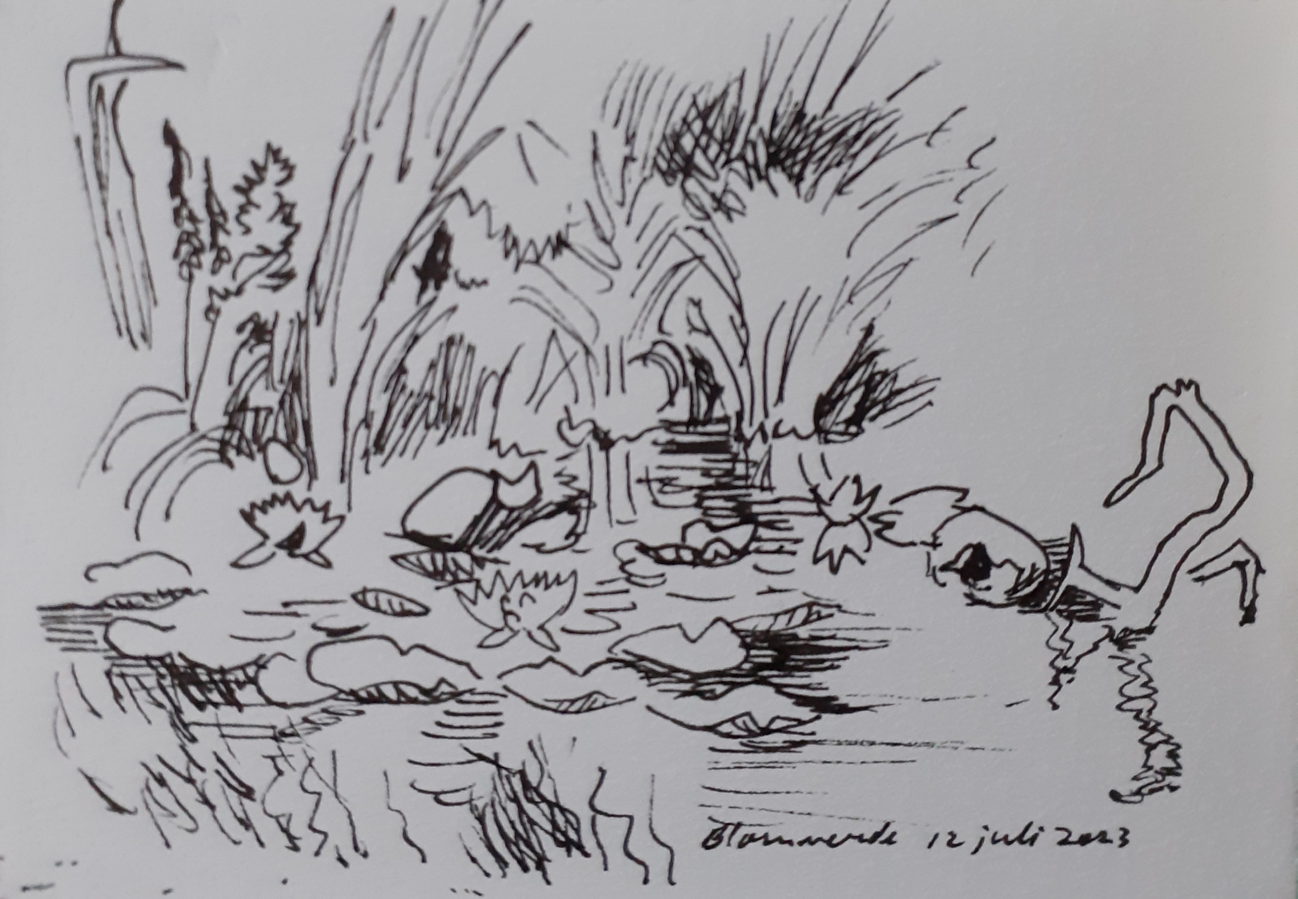 Pentekening van een waterplas in Clingendael, Den Haag