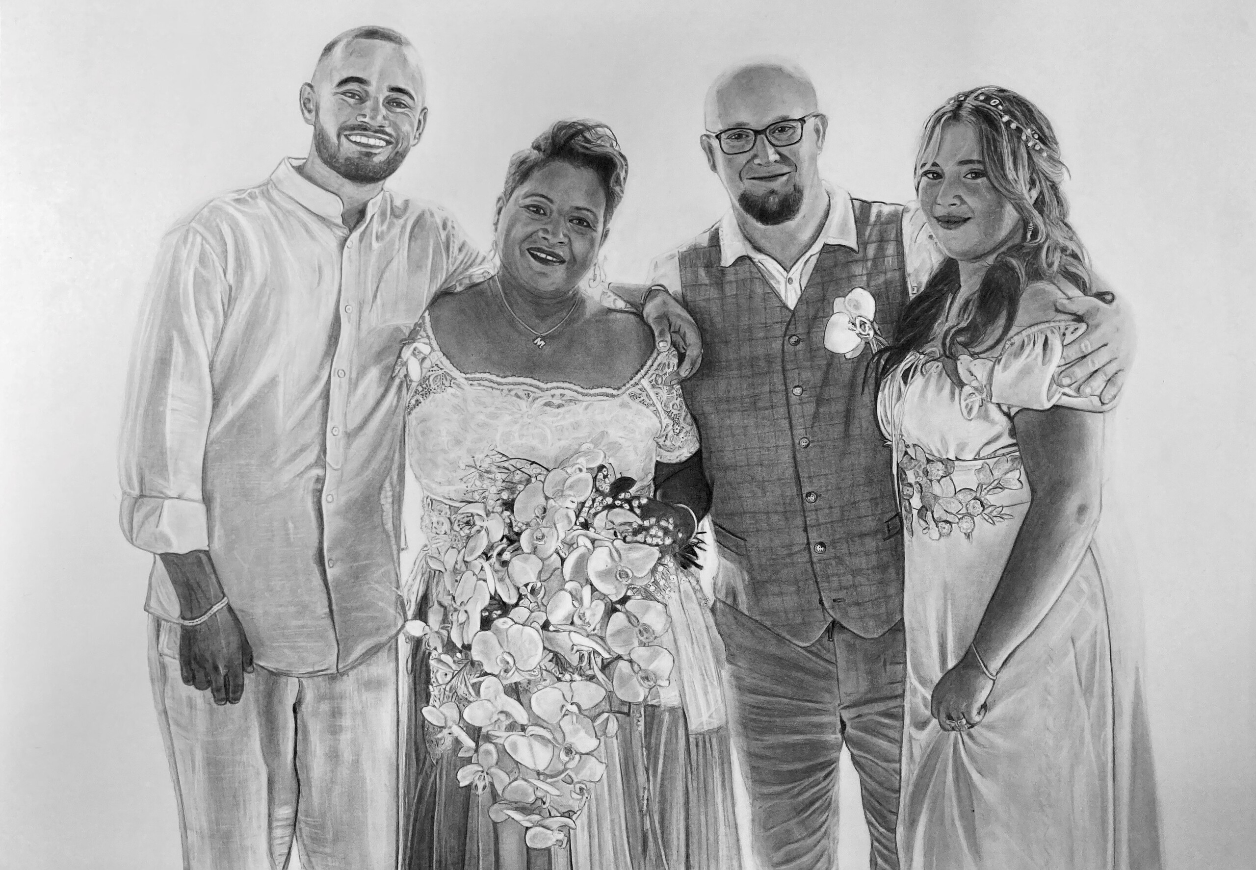 Trouwen, Portrettekening, Grafietpotlood op papier, A3 formaat
