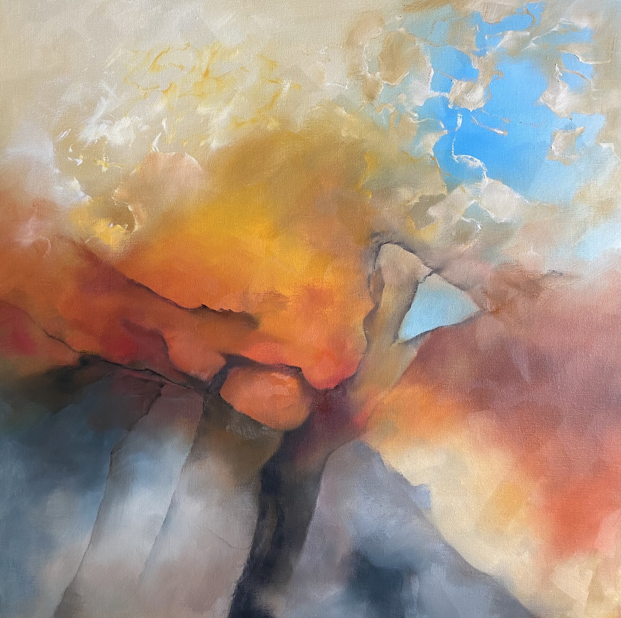Ik krijg vaak de vraag ‘waar haal je de inspiratie vandaan?’ Bij mijn laatste 3 schilderijen is het antwoord niet zo moeilijk. Onze vakantie in het Müllertahl in Luxemburg heeft best veel indruk op mij gemaakt. Je voelt je als mens heel klein als je voor de enorme rotswanden staat. Hier voel je de oerkracht van de aarde.
