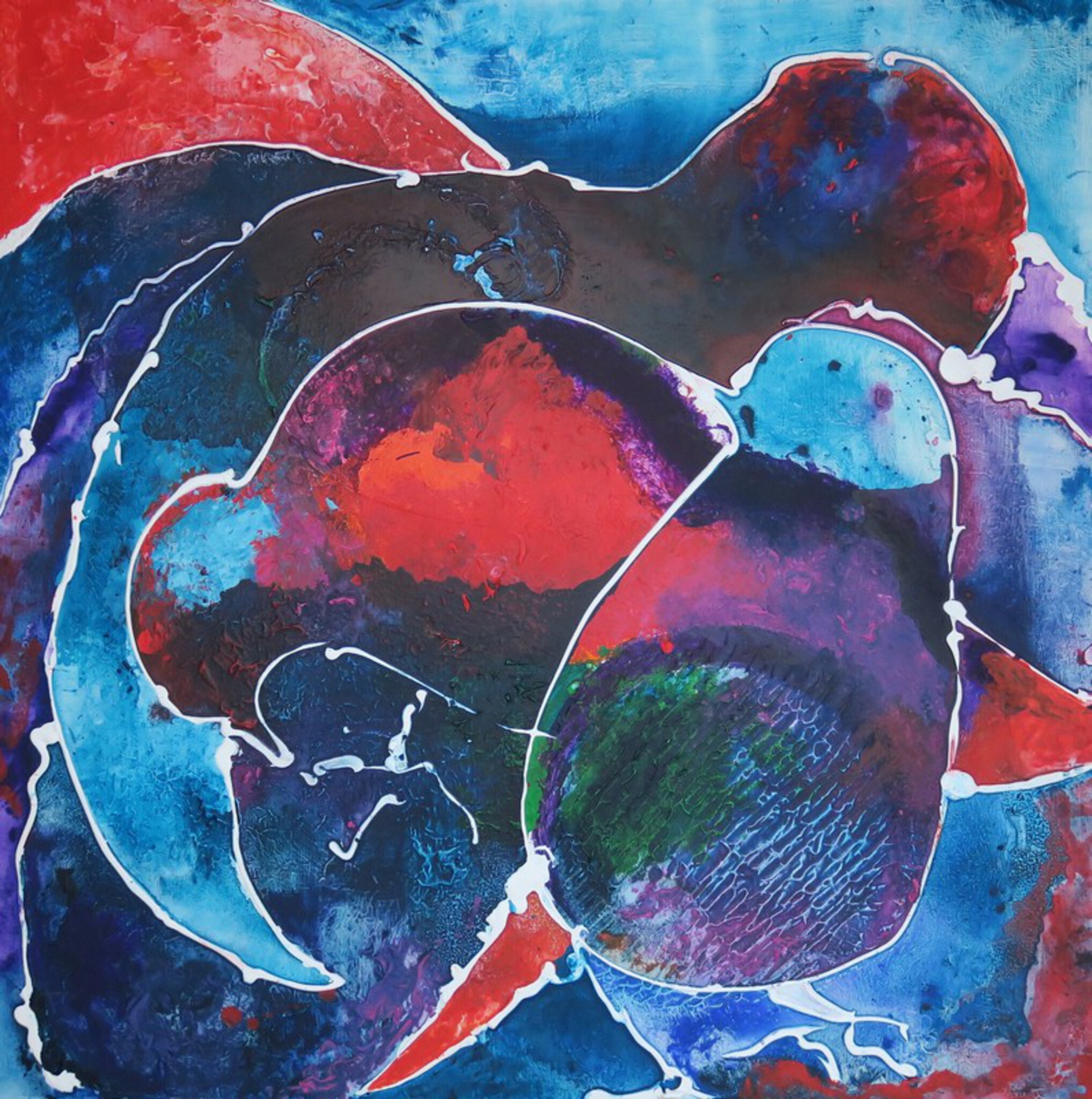 Gevarieerde schilderijen. Ingewikkelde abstract-figuratieve doeken, maar ook snel en intuïtief gemaakt abstract of realistisch werk. De mens en zijn emoties zijn een onuitputtelijke inspiratiebron.