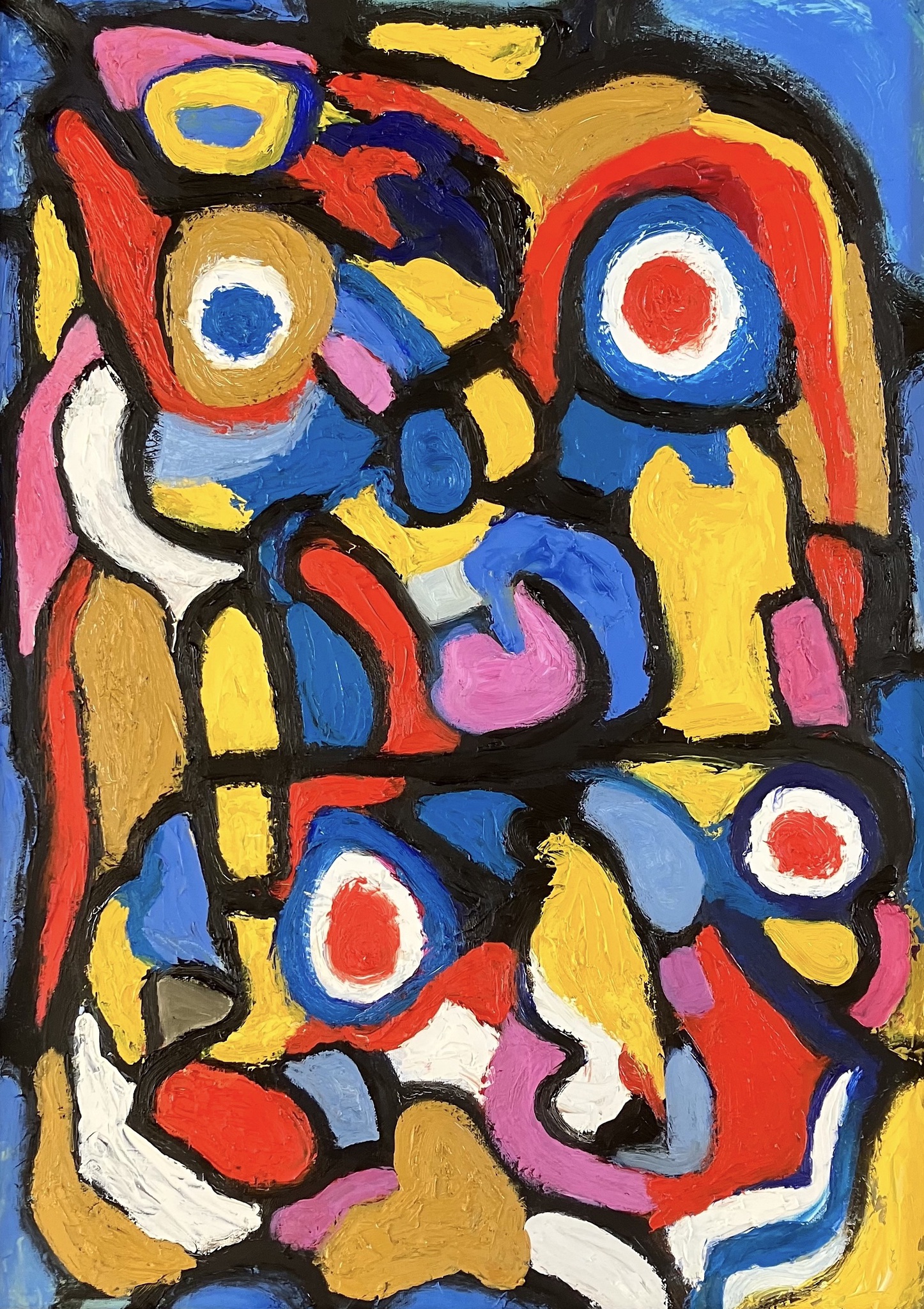 Mijn tweede abstracte schilderij. Dit keer geschilderd met Cobra en Artisan olieverf op doek. Ik had het doek horizontaal op de ezel. Toen het 'af' was draaide ik het doek een kwartslag om en toen vond ik het eigenlijk wel veel mooier. Lijkt op twee uilen maar dat was niet mijn bedoeling...