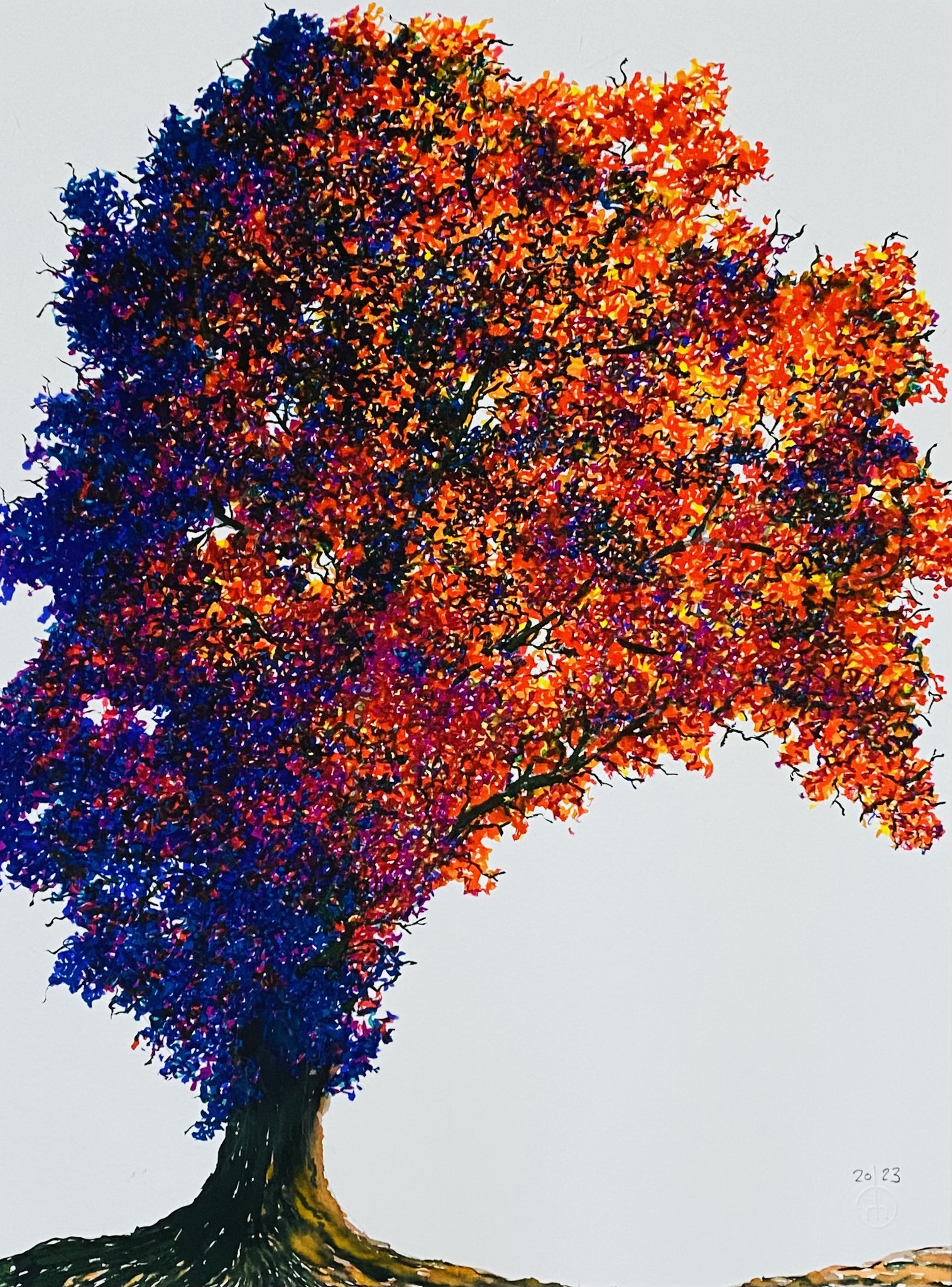 Een eik als Jimmy Hendrix, flamboyant Kalligrafie techniek in Japanse inkt niet ingelijst