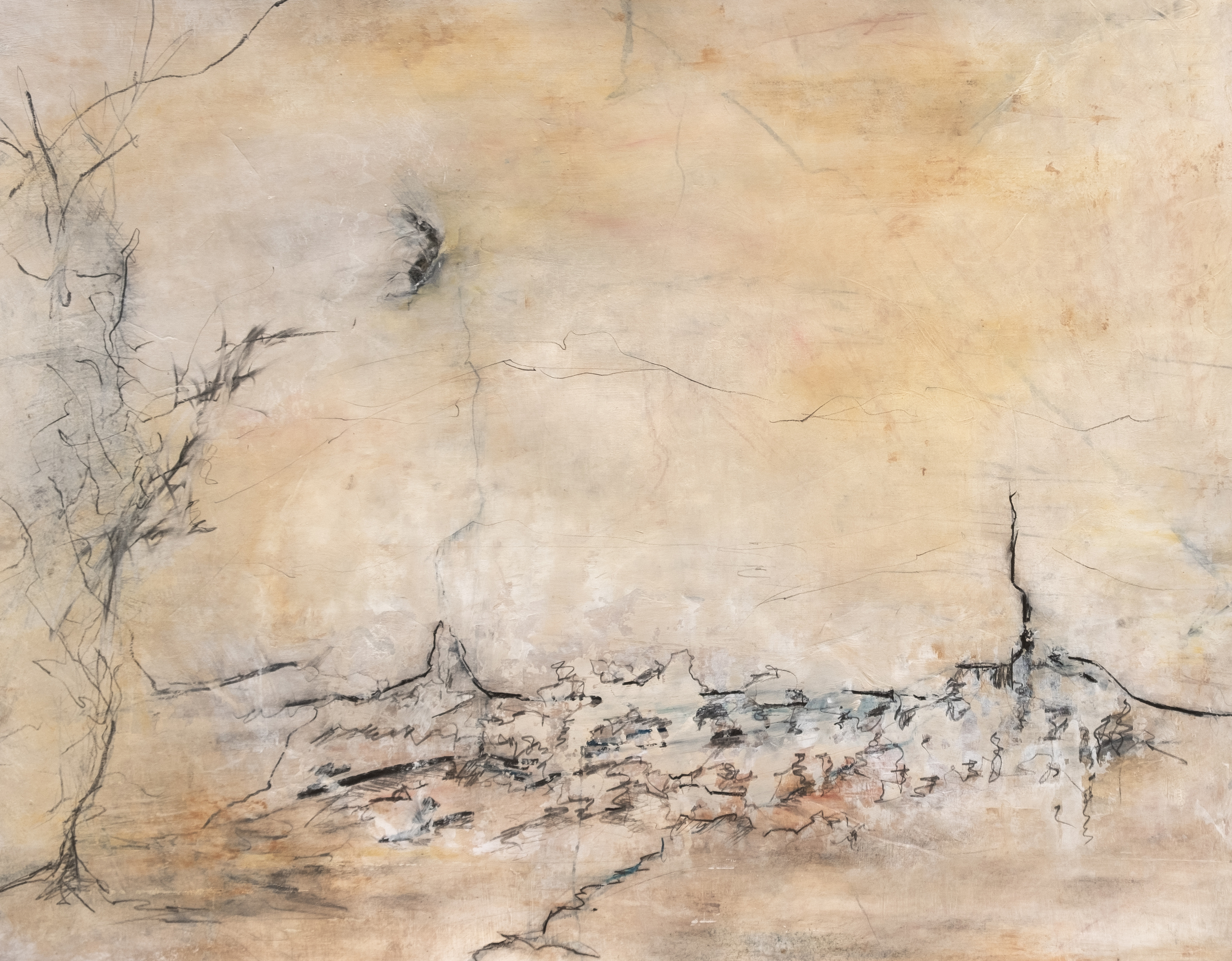 acryl, houtskool, (kleur)potlood, pastel op papier
