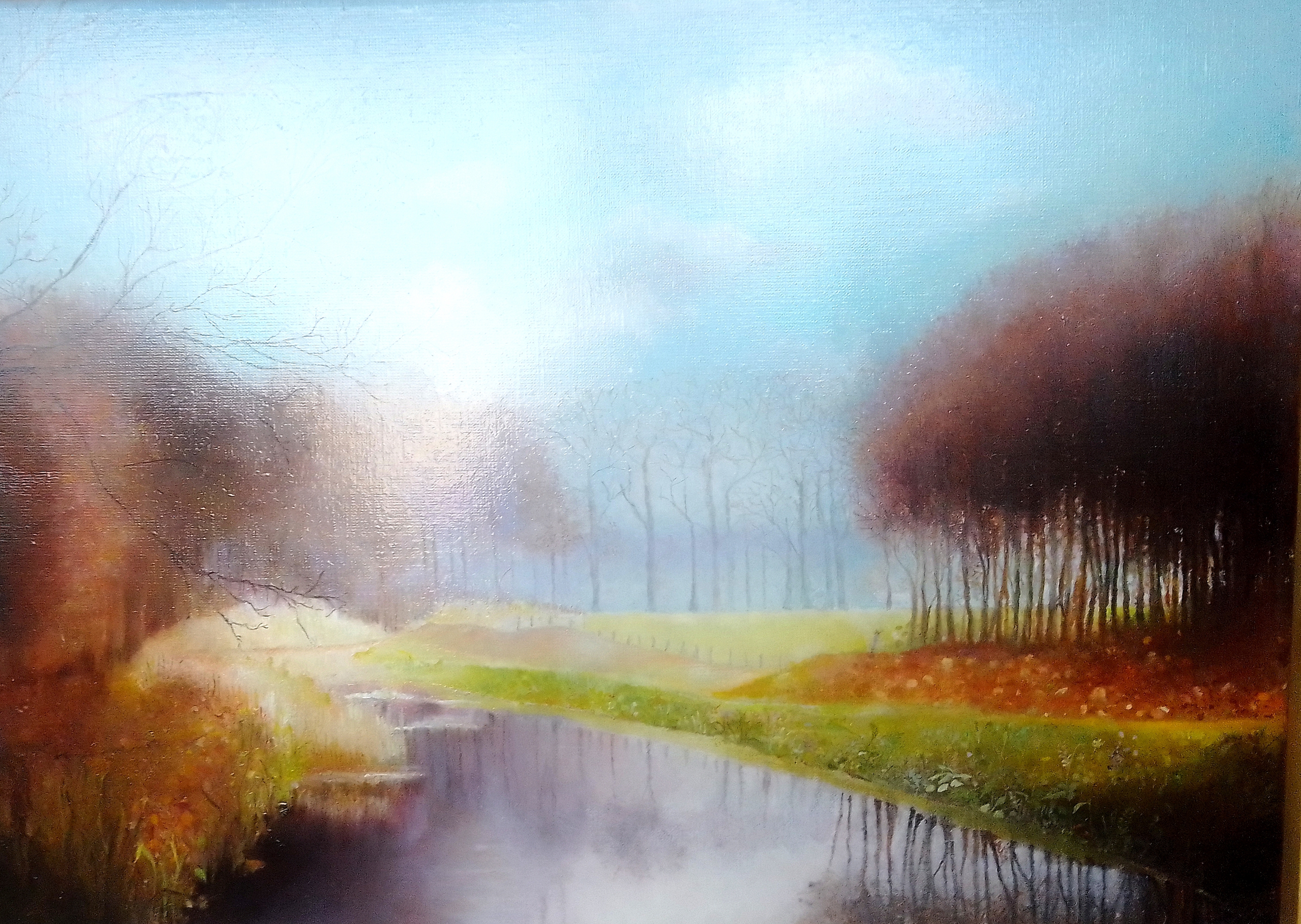 Zutphen is gelegen tussen de Veluwe en de achterhoek. Het landschap is gelaagd en gevarieerd. Een landschap van rivieren en beekjes, van bosjes en bos, van struikgewas en coulissen.In mijn werk leg ik mij toe op het schilderen van mijn natuurlijke leefomgeving, zowel in kleine schatten zoals ik die op de grond zie liggen, als op het landschap waarin ik mij bevind. Ik leg met olieverf mijn ontroering vast en verbind mijzelf op die manier met de natuur. Mijn stijl is in uitgangspunt realistisch en richt zich op sfeer en beleving.
