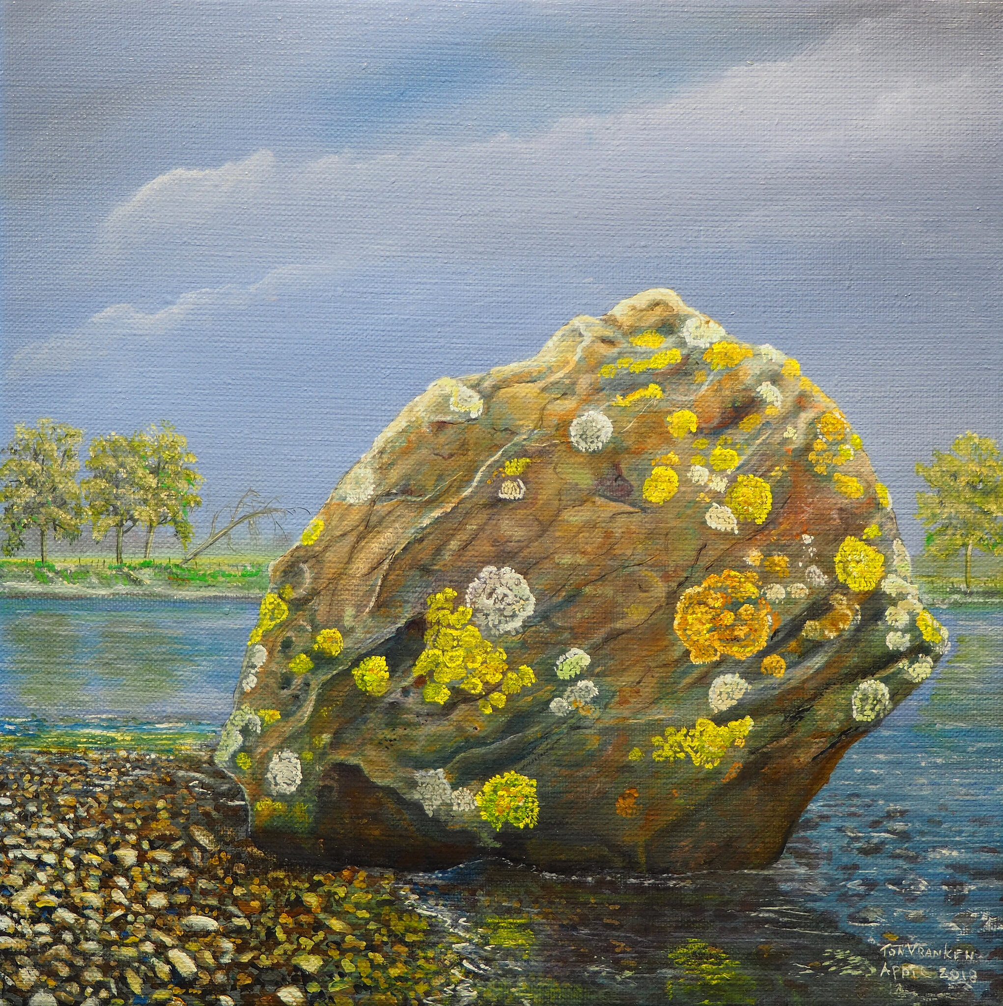 Ik schilder alleen het Zuid Limburgs landschap, bij voorkeur zijn dat hoogstambomen, heggen en de Maas met haar zwerfkeien.
