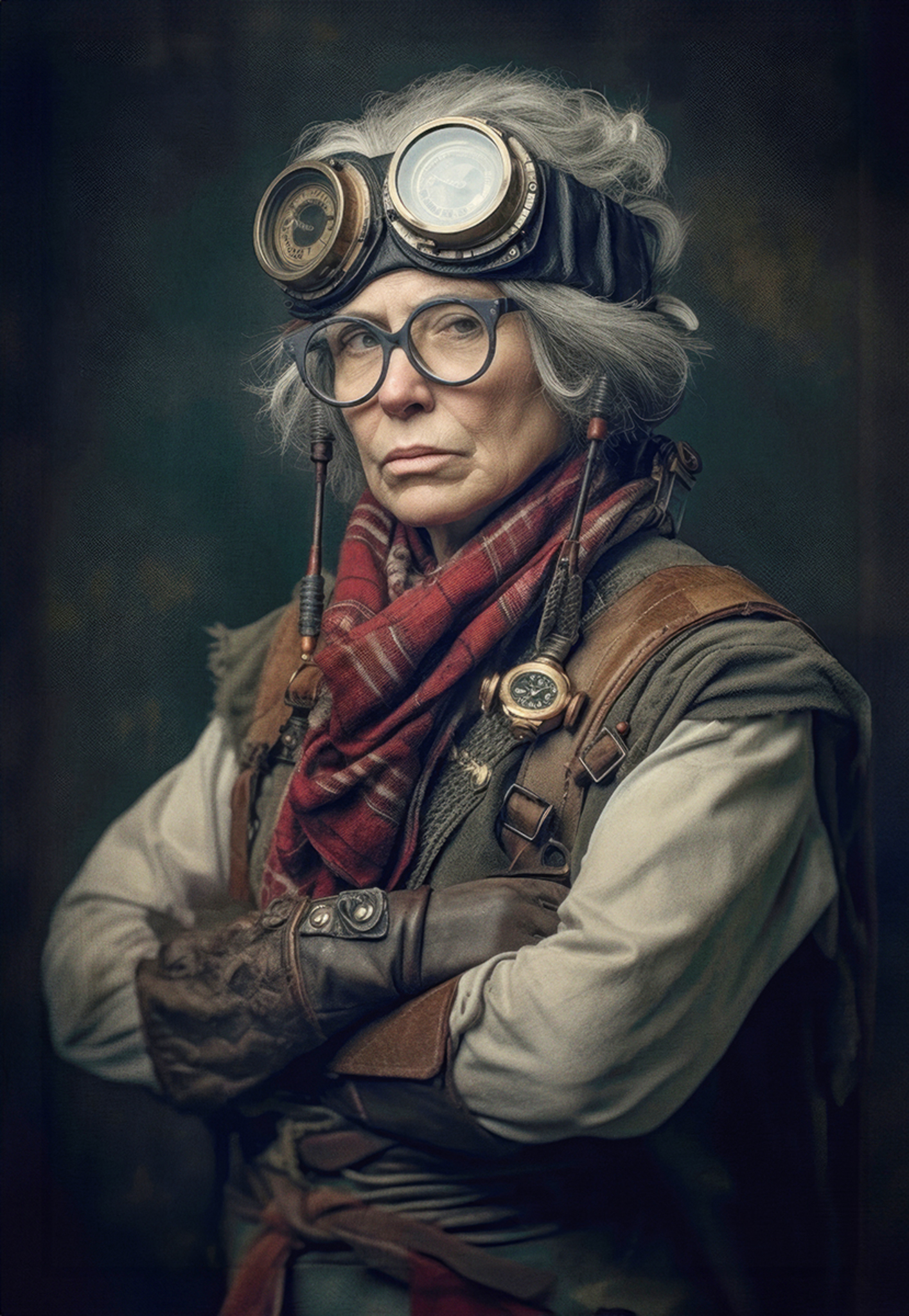 De vrouw die de leiding heeft, de chef van de tijdreizigers. Zij zorgt ervoor dat alles vlotjes verloopt. Dit werk maakt deel uit van een reeks portretten "Time Travelers", verhaal van twee mannen, met een plan. Het plan om tijdreizigers uit te sturen, naar het verleden en de toekomst. Met als doel, het heden te herschrijven. Een geheime missie om de toekomst van de mensheid te veranderen. Geïnspireerd door de tijdreizen van Jules Verne en de relativiteitstheorie van Einstein, die laat zien dat tijd en ruimte buigbaar zijn en kneedbaar.