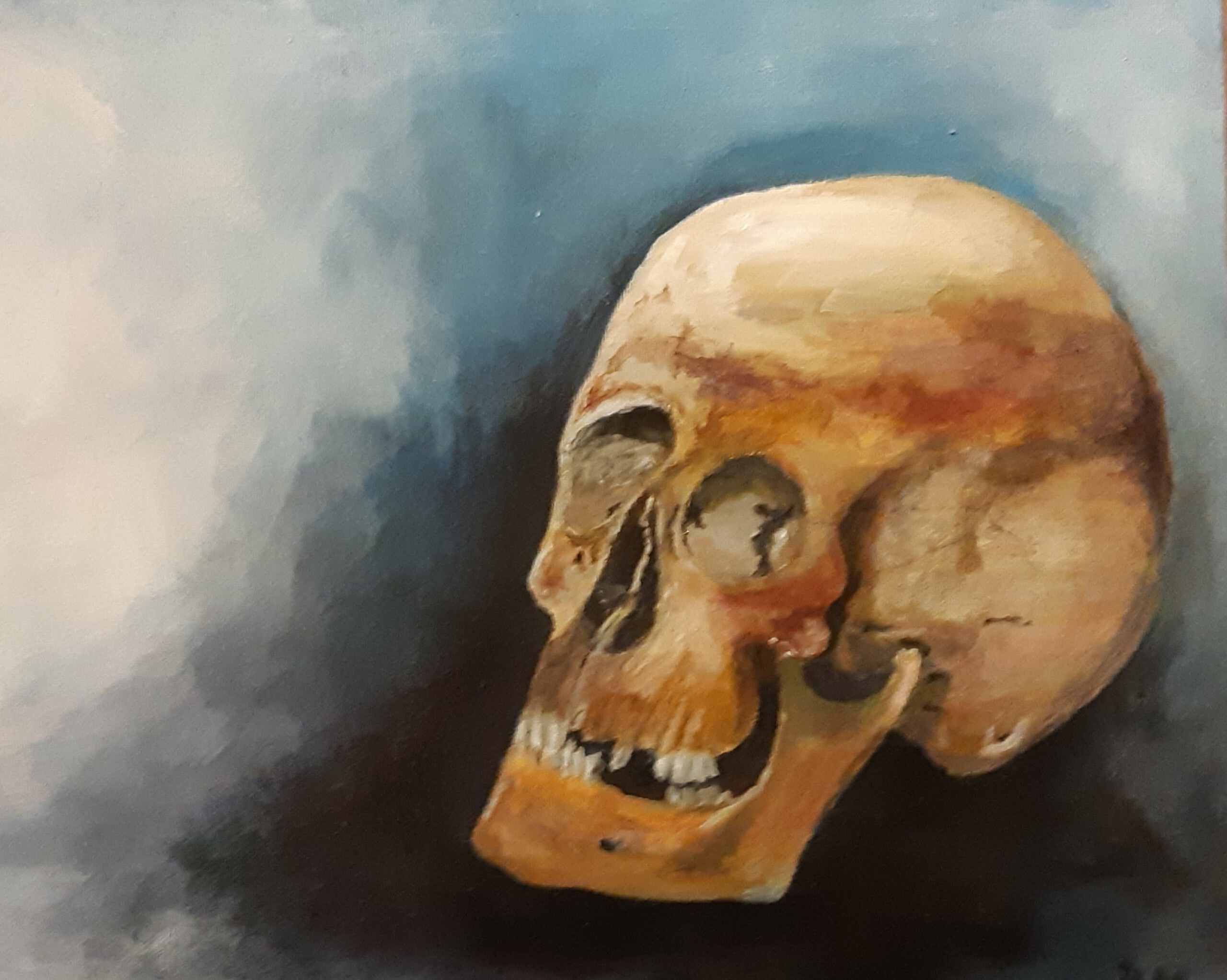 Schedel en profil Acrylverf