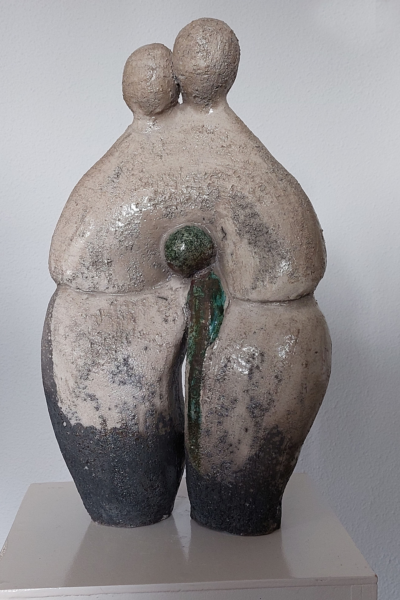 Ik maak figuratieve beelden van klei, geglazuurd of raku-gestookt. De vorm eenvoudig en geïnspireerd door gevoelens waarin de menselijke emotie centraal staat. Mensen zien er hun eigen symboliek in.